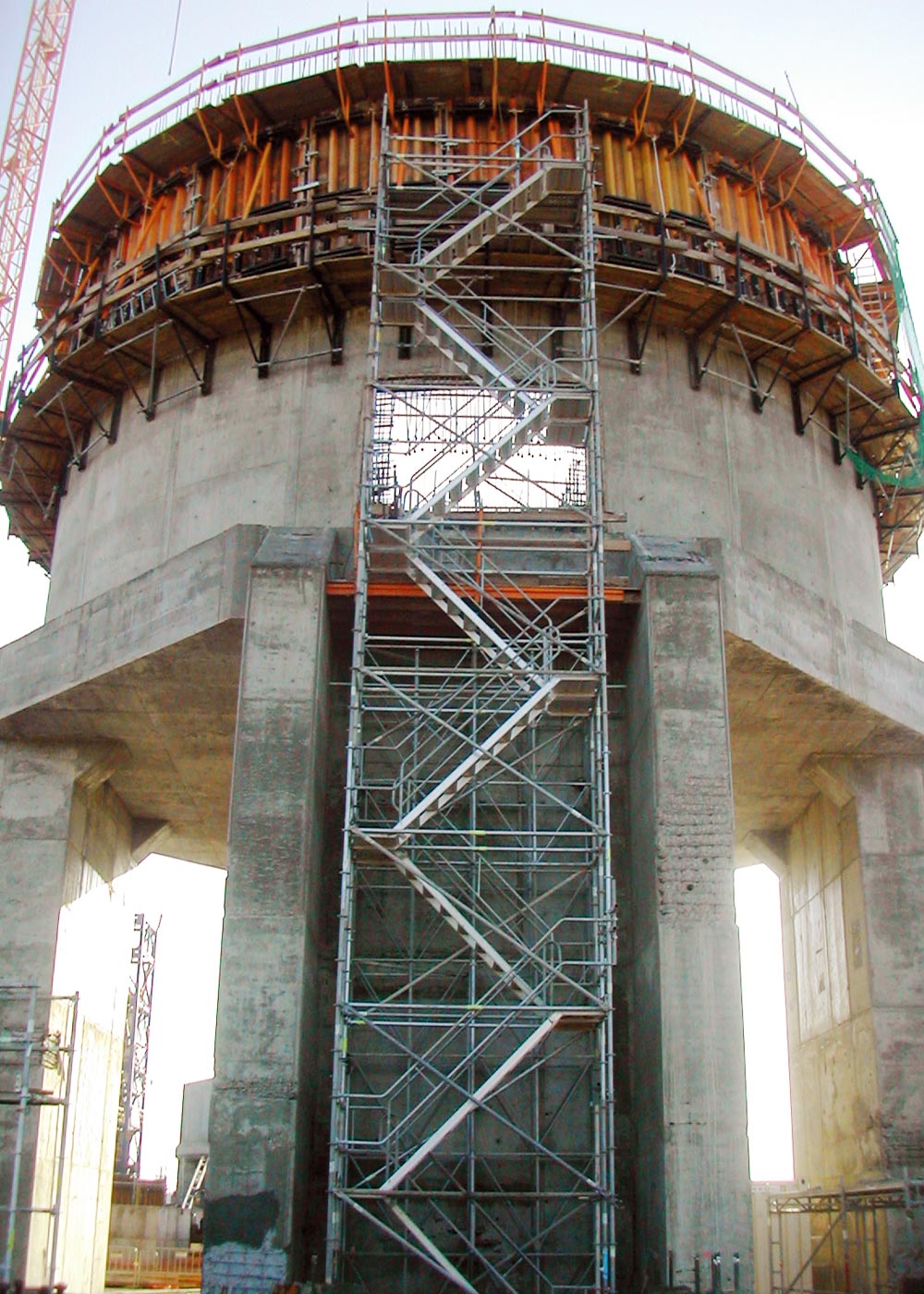 Facilita o acesso seguro com amplas plataformas de trabalho a diferentes pontos do canteiro de obra.