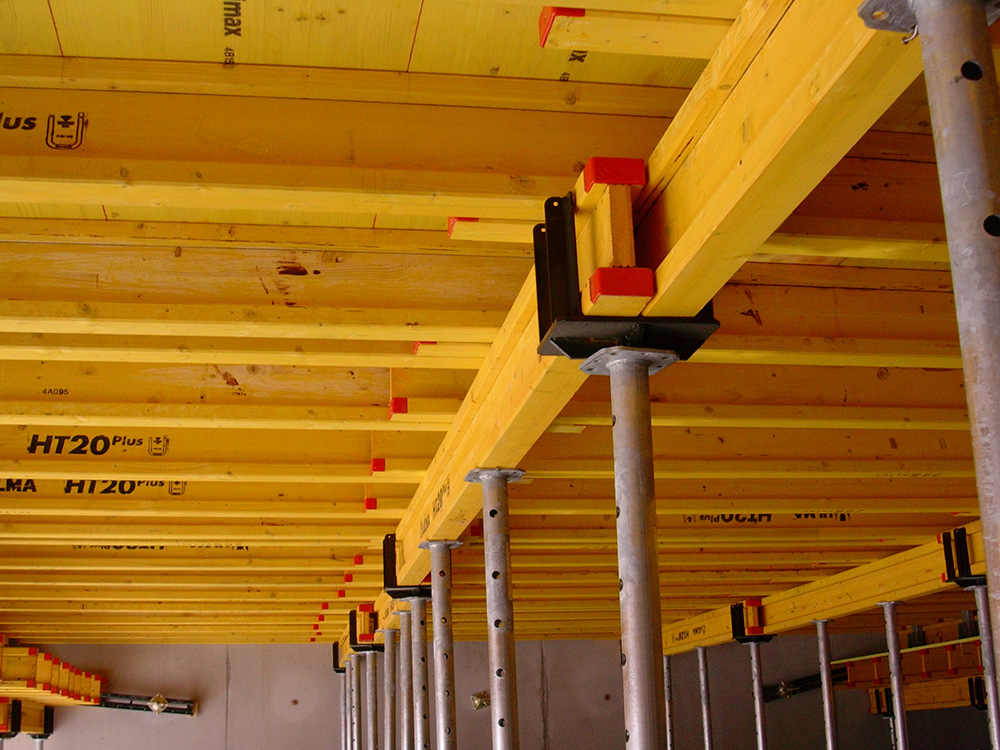 Cofragem de vigas de madeira para a construçao de qualquer tipo de lajes: maciças, nervuradas, inclinadas, vigas de bordadura, arremates, balanços, etc. As vigas independentes proporcionam grande flexibilidade a este sistema de cofragem e excelente acabamento de betão visto.