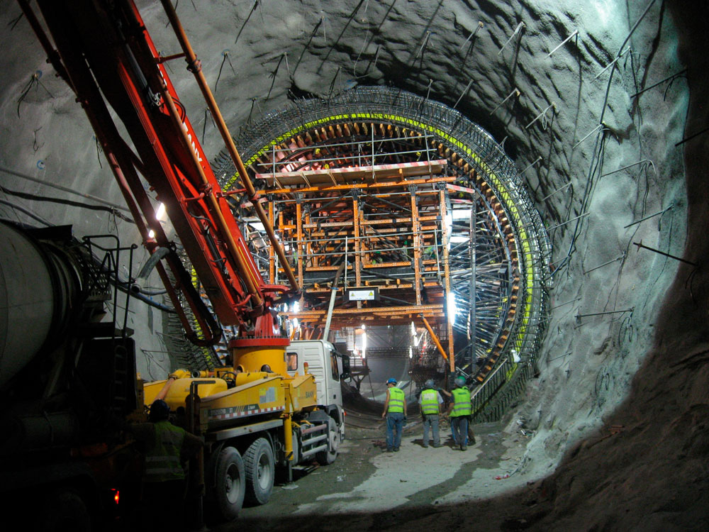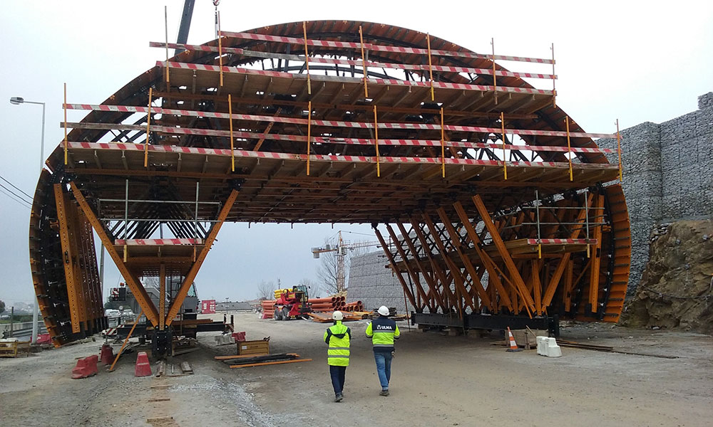 Sistema de cofragem para túneis MK, composto por um ligeiro carro móvel que soluciona tanto o suporte da estrutura, como a cofragem. Desenvolvido para o mercado de infraestrutura, especificamente para construção de túneis escavados, de até 1 km de largura: estações de metro, conexões entre túneis, galerias hidráulicas, etc.