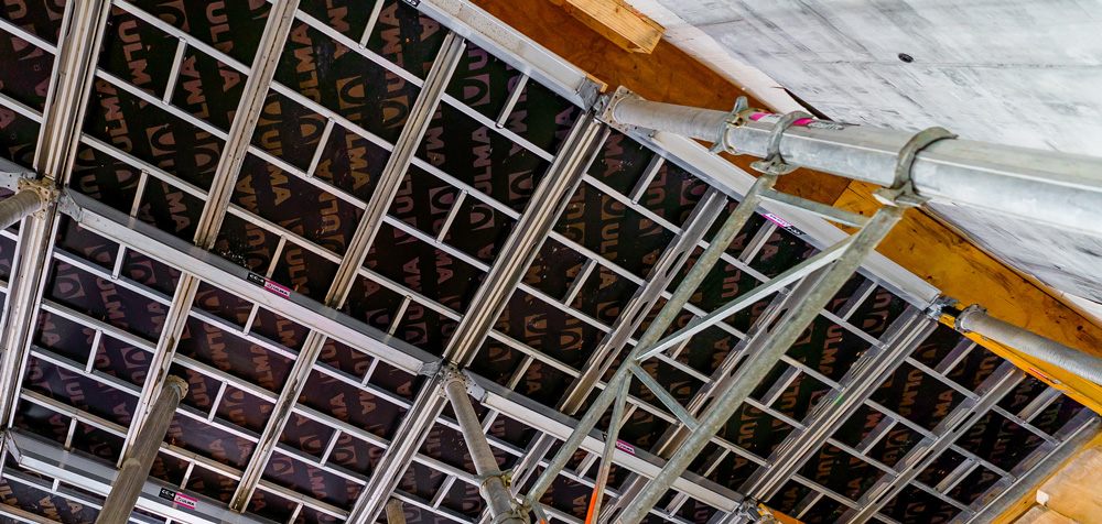 Painel SPRUCE: Econômico e ligeiro, garante um acabamento de betão liso. Painel de lâminas de abeto coladas, revestido com película fenólica lisa e resistente ao desgaste (120 g/m²).