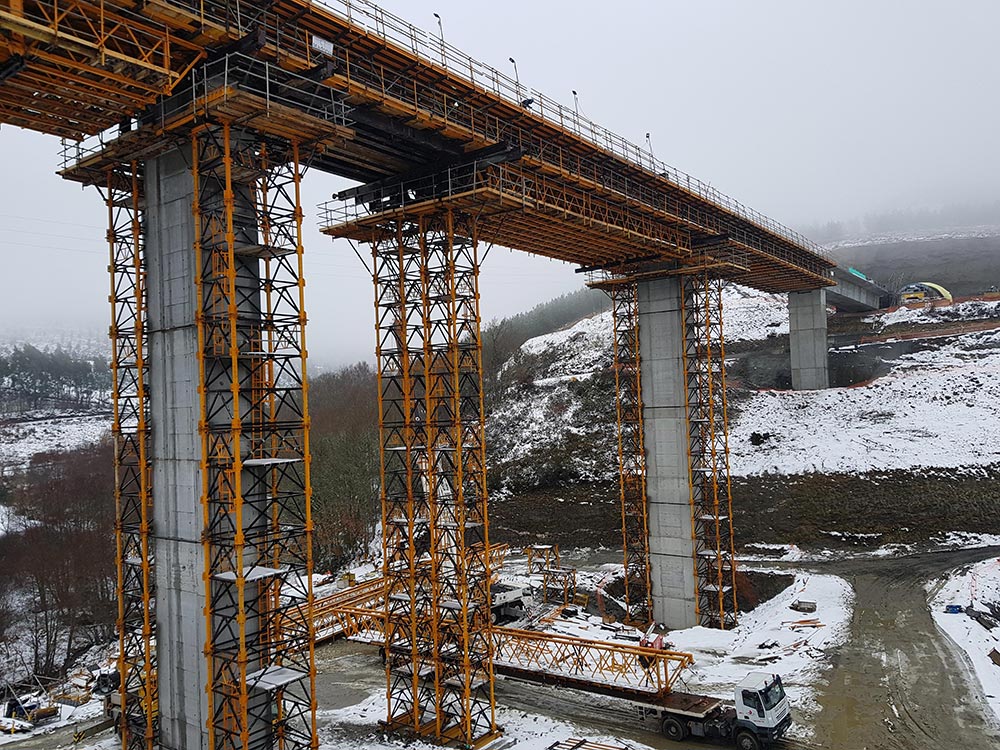 Desenvolvida especificamente para a construção de pontes e viadutos de grande altura, pelo sistema de torre em pórtico, podendo também ser utilizada em pontes baixas, onde por condições do terreno, não seja possível utilizar torres conjugadas.