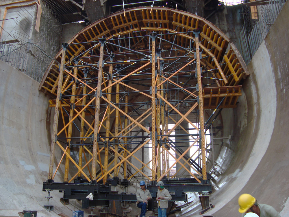 Apesar do complexo volume do túnel transição (27 m de comprimento e altura entre 11 e 14,5 m), o sistema MK permitiu executar seções variáveis, de circular a quadrada do túnel, com estruturas de escoramento e cofragem em carros móveis, que podem ser deslocados entre as estruturas a serem executadas, sem a necessidade de desmontagem e nova montagem de uma estrutura variável tão complexa.