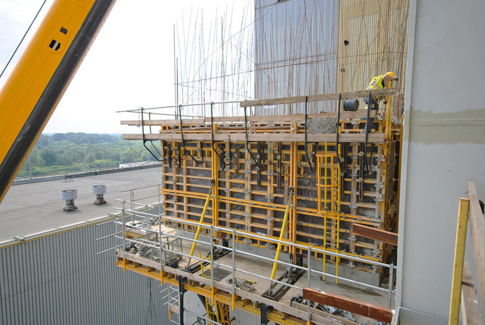 ULMA utilizou pela primeira vez na Polônia o sistema auto-trepante ATR, que resolveu o espaço, limitado da obra e o complexa utilização de grua para a movimentação das a cofragens. Cada núcleo inclui três poços de elevador totalizando seis cilindros hidráulicos. Foram realizadas 19 movimentações de cofragem, por meio dos poços. O sistema ATR permite o trabalho sem grua, antes um problema. Além disso, as plataformas extensas e guarda-corpo garantiram a segurança do trabalhador.