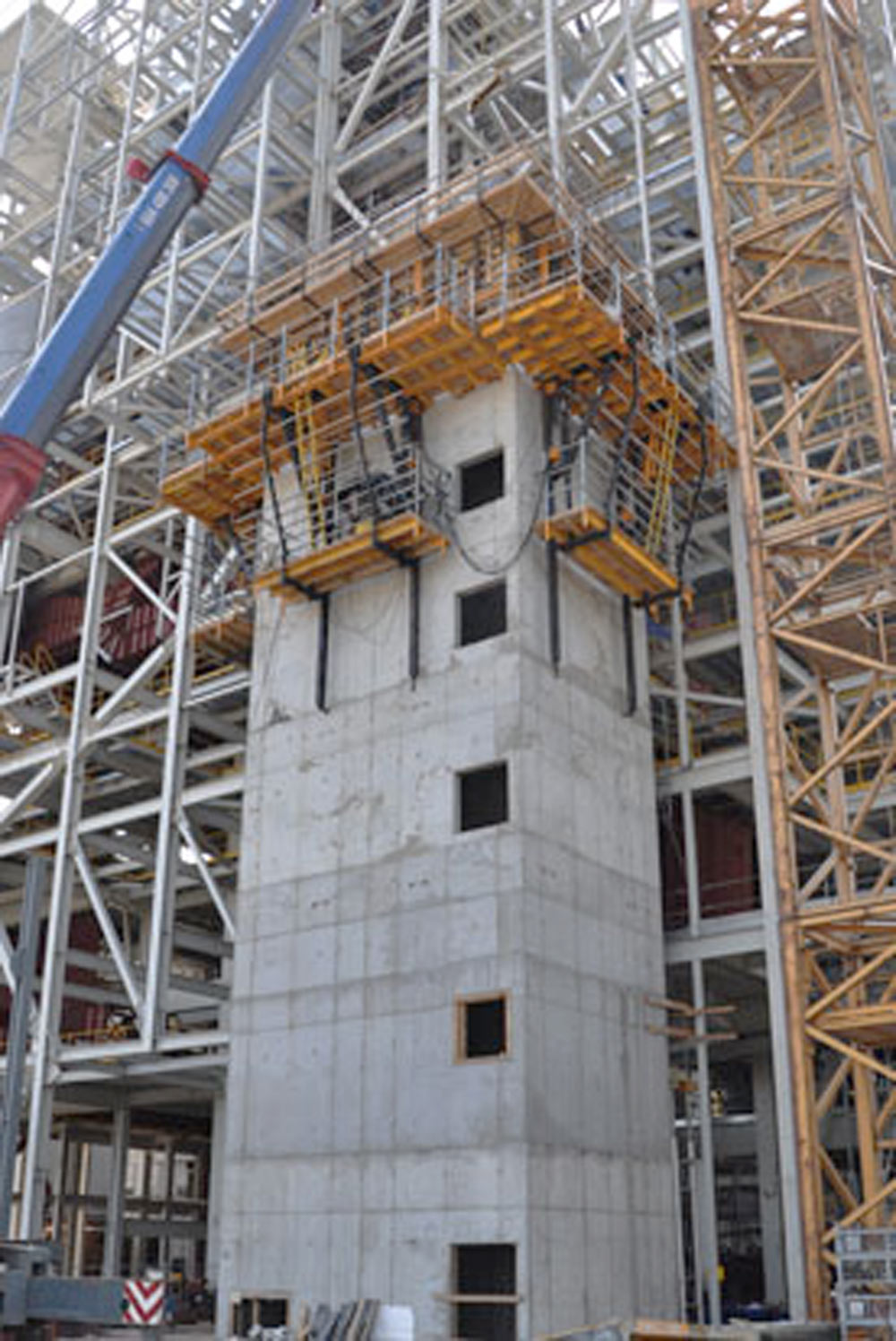 Utilizado a cerca de um ano na construção do bloco de Biomassa da Polaniec, exemplo pioneiro da indústria de energética polaca. A comunicação vertical do edifício foi resolvida com a construção de dois poços de elevador de 70 m de altura.
