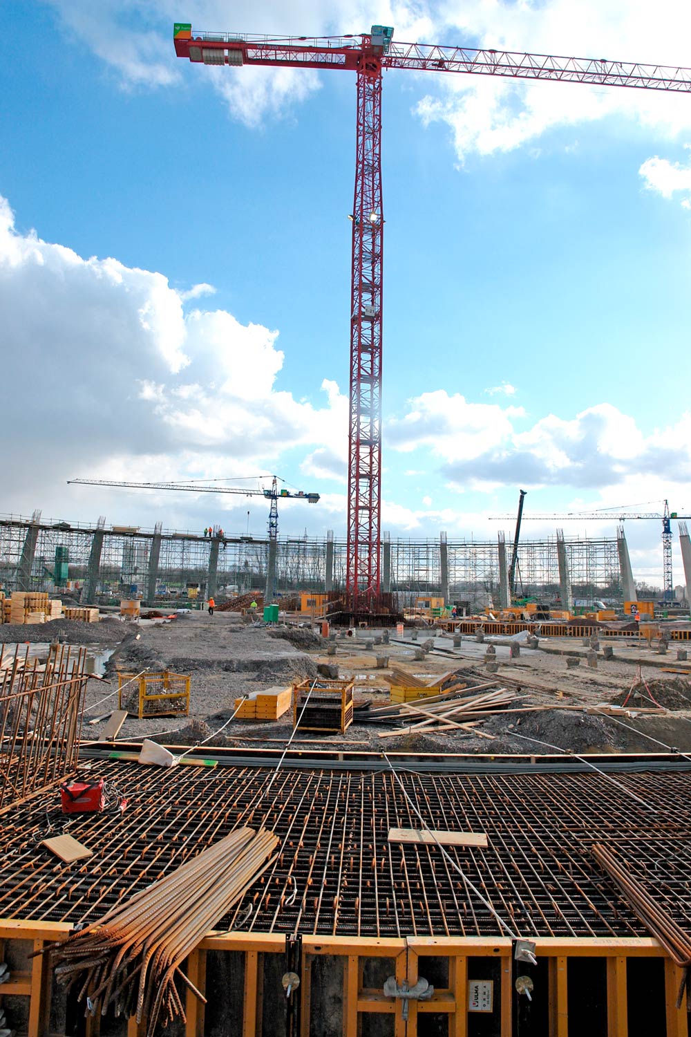 A gama de fornecimentos foi completada com 8.500 m2 de Cofragem Modular ORMA, 11.200 m2 de cofragens de laje, 5.500 metros lineares de Cimbre T-60 e 56.000 metros lineares de vigas de madeira. A qualidade do material e o elevado desempenho, em conjunto com os conhecimentos técnicos e a flexibilidade das cofragens contribuíram para a construção do núcleo dentro do tempo previsto, apesar dos prazos limitados.