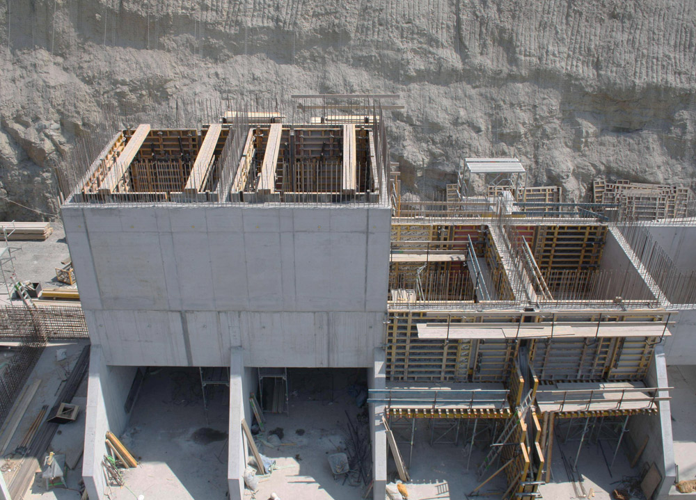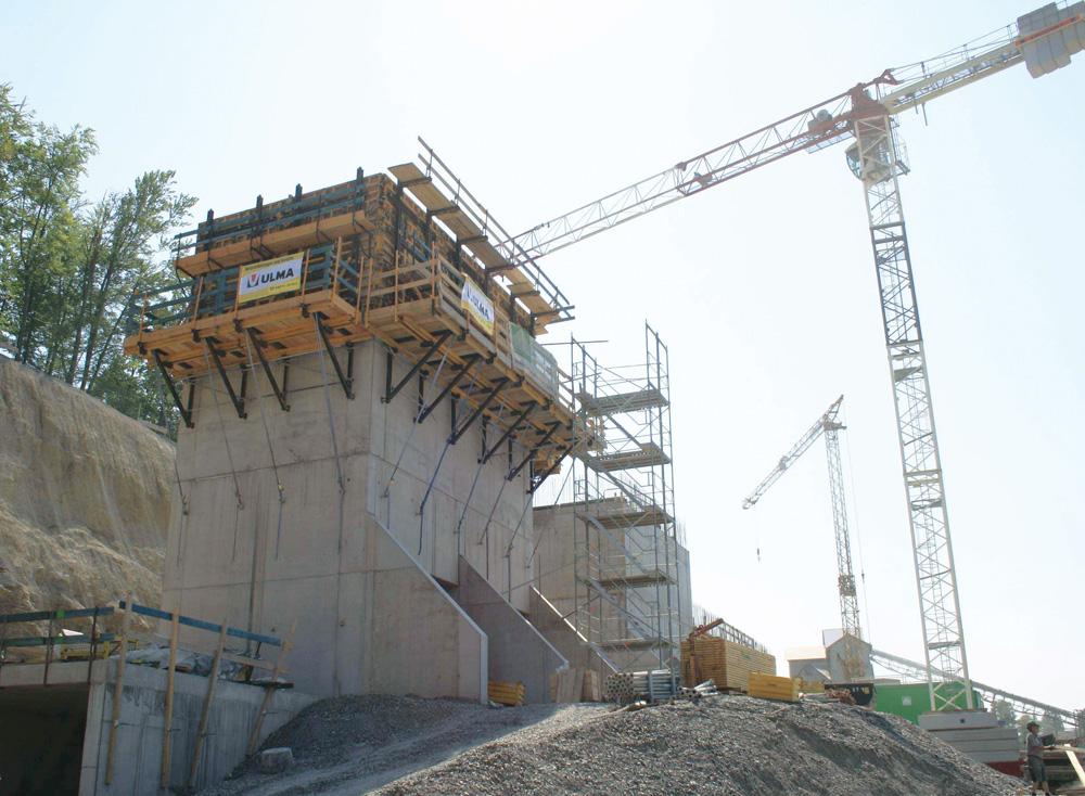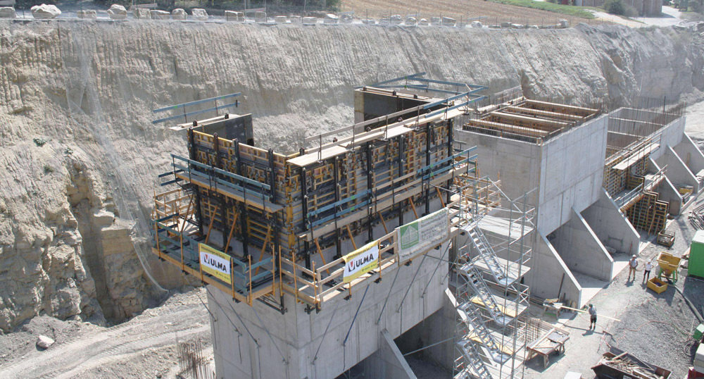 Dentro dos núcleos internos são empregados Plataformas KSP de 5,9 m de luz, com Riostras MK-180 e encaixes deformáveis. O Console CR-250 funciona como uma plataforma de apoio e sistema trepante, com a Cofragem Vertical ORMA e sistema de retranqueio para a descofragem. Todas as plataformas e cofragens moveram-se horizontalmente para o silo seguinte sem alterar a sua geometria, de acordo com o plano de construção previsto.