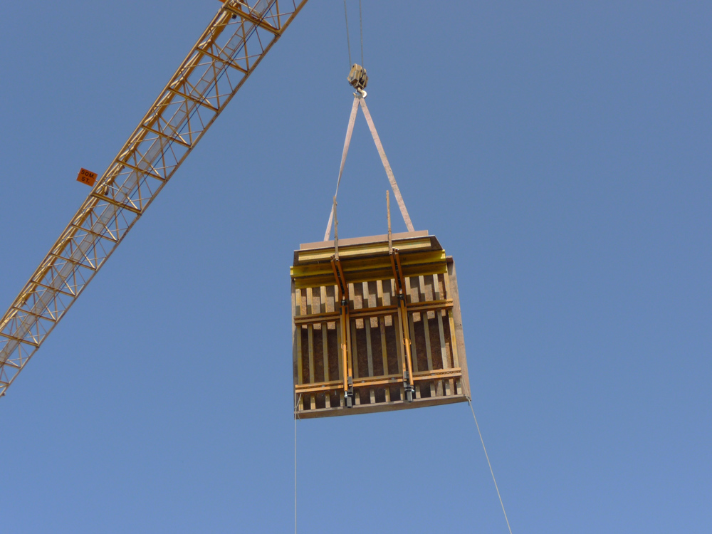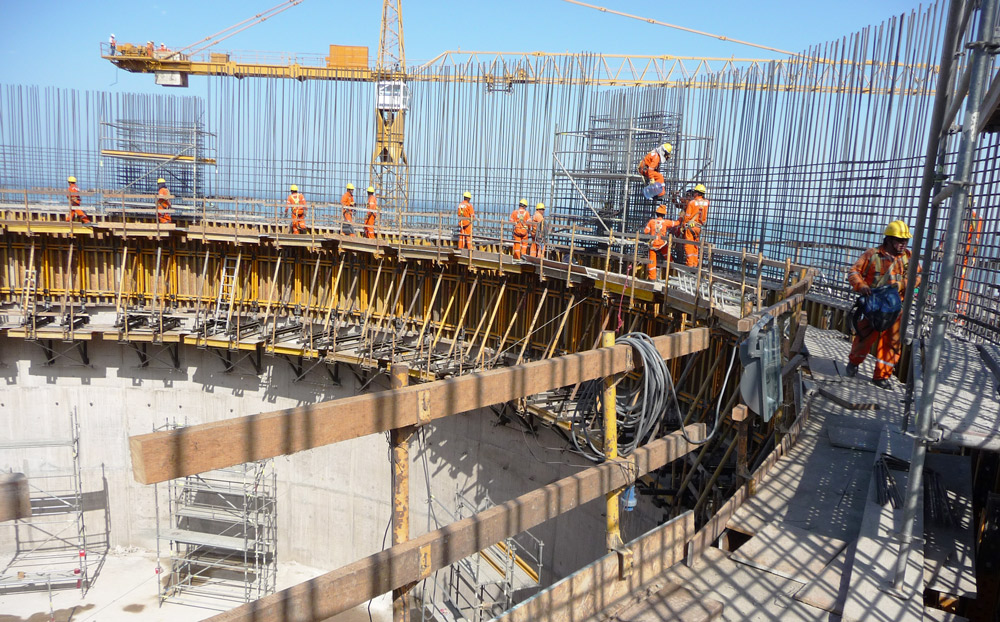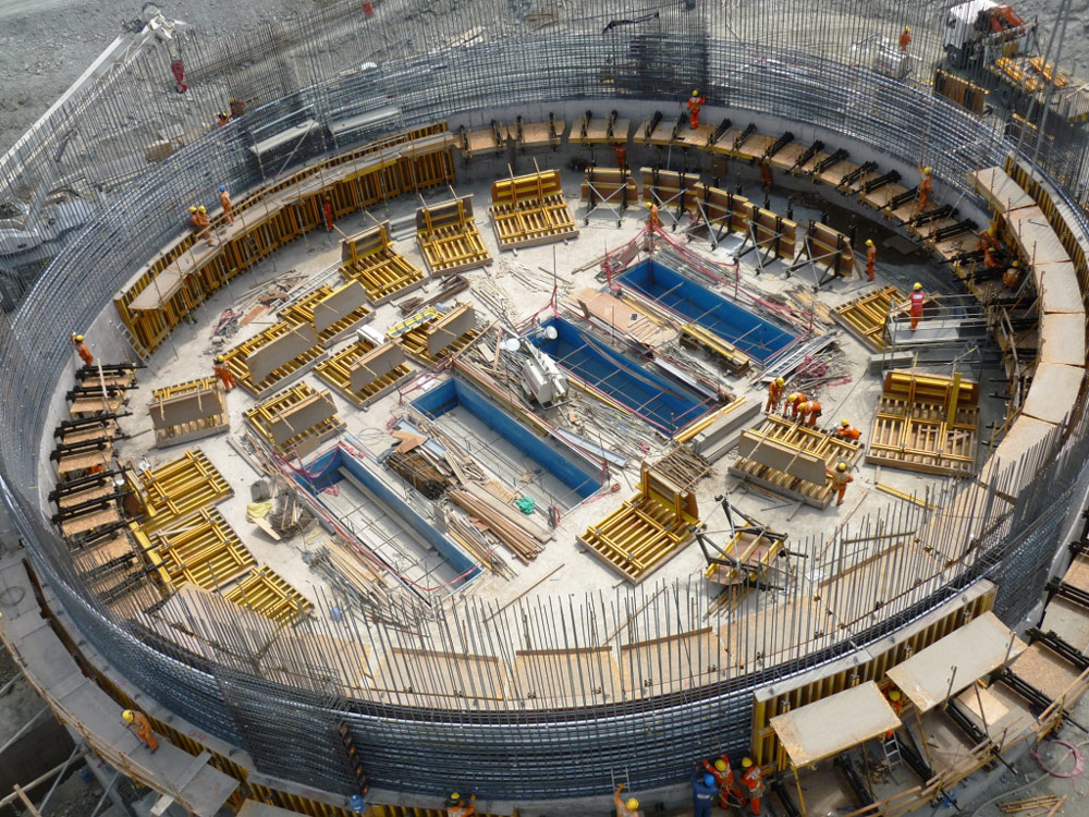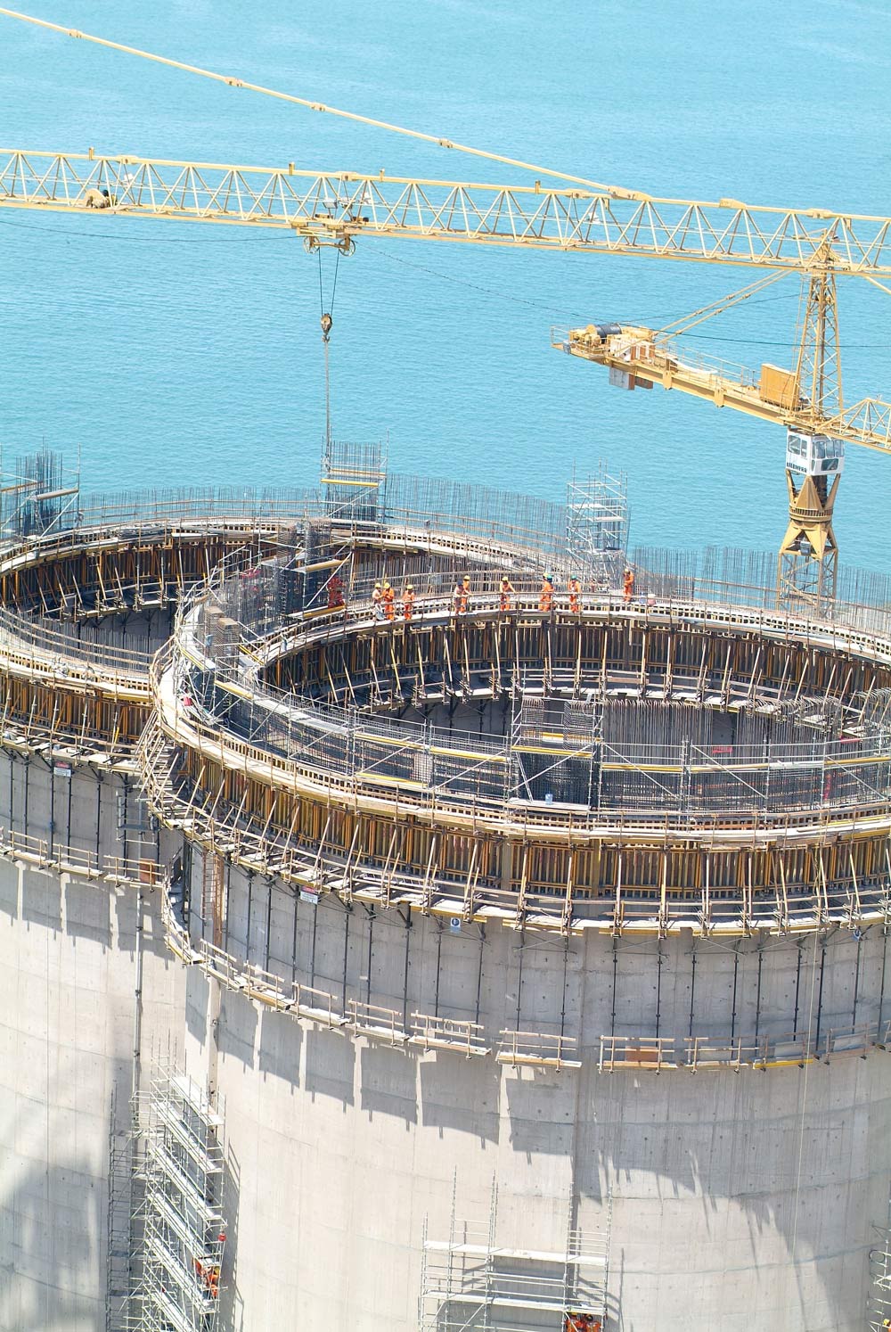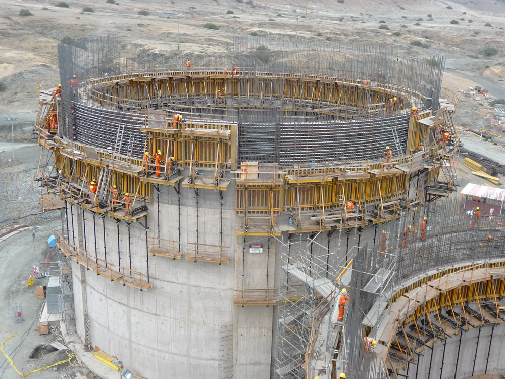 Suas elevadas dimensões requeriam o emprego de sistemas moldáveis à geometria circular de cada silo, que ao mesmo tempo, garantiam um melhor acabamento de betão. Em cada silo, empregou-se o escoramento de cofragem ENKOFORM VMK, com 72 painéis de 3 m de altura e 2,65 m de largura sobre console trepante de uma face. Realizaram-se 17 etapas de betonagem.