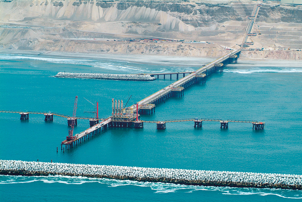 Para a execução do terminal marítimo foi construída uma ponte com pilares de 1,4 km de comprimento que se estende desde a costa até a plataforma de carga. A estrutura do cais é composta por: pilares, meso estrutura, vigas longitudinais, prumos, lajes pré-fabricadas de betão, grades e tubagens de serviço.
