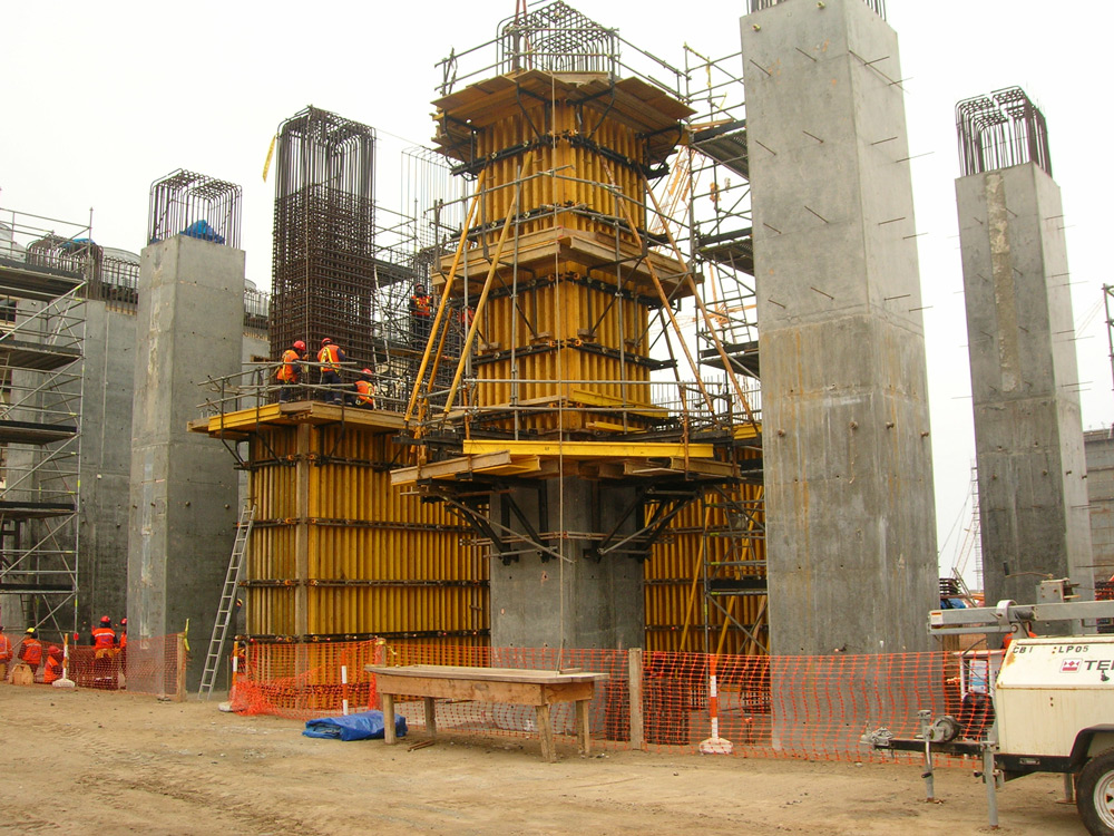 Foi projetada uma plataforma localizada debaixo de cada um dos eixos do cais com o Sistema BRIO. Também foi executada uma estrutura de andaime em sacada, com um comprimento de 35 m, para realizar trabalhos de pintura, solda etc. Este andaime foi rodando desde o primeiro eixo até ao último. Foi o primeiro projeto no Peru com andaimes em sacada com esta dimensão.