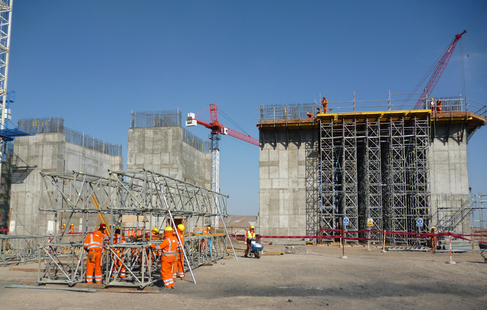 O sistema de cofragem modular ORMA foi utilizado para as cofragens das diferentes estruturas, pois necessitava de um sistema capaz de suportar grandes pressões de betão e com poucos acessórios pode formar módulos para uma melhor movimentação.