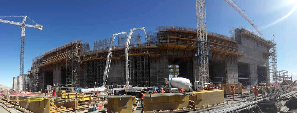 Para o friso era necessário uma cofragem de uma face a grande altura, capaz de suportar grandes pressões de betão. Foi aplicado o CONSOLE SBF, uma estrutura única, formada por perfis e tubos soldados entre si, capaz de suportar grandes cargas e ao mesmo tempo funcionar como plataforma de trabalho para os operários.
