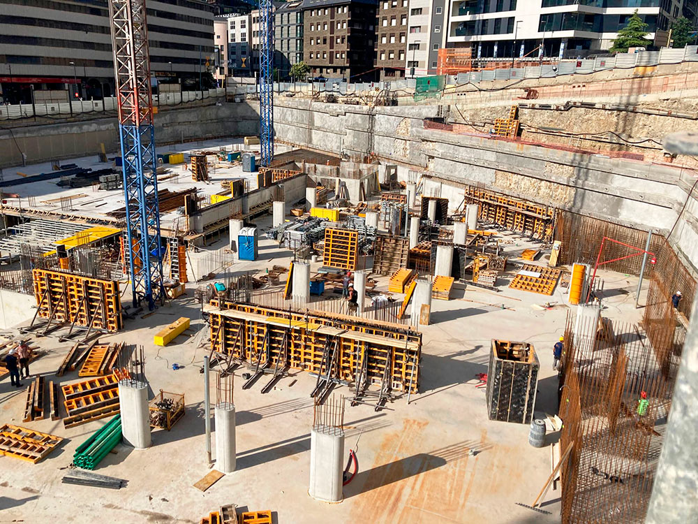 Os desafios desta obra foram vários: a geometria particular do edifício, pilares especiais, paredes de uma face, paredes circulares de uma face, etc. Para resolver todos estes desafios, a ULMA ofereceu ao cliente soluções inovadoras. Um exemplo disso é a nova cofragem modular recuperável ONADEK.