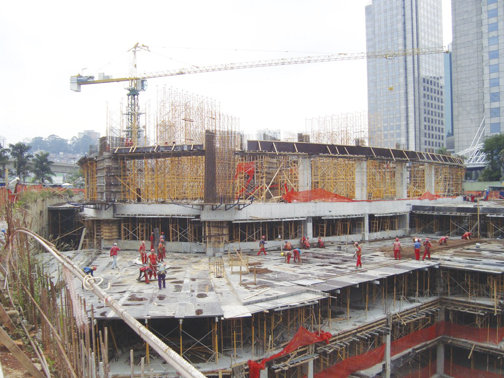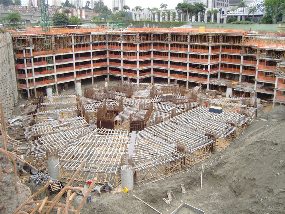 O Cimbre G facilitou o escoramento em pés direitos altos e permitiu uma rápida descofragem das lajes para reutilizar o mesmo material em fases sucessivas. A fundação foi executada com a cofragem Portátil COMAIN.