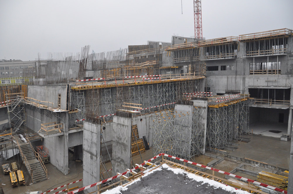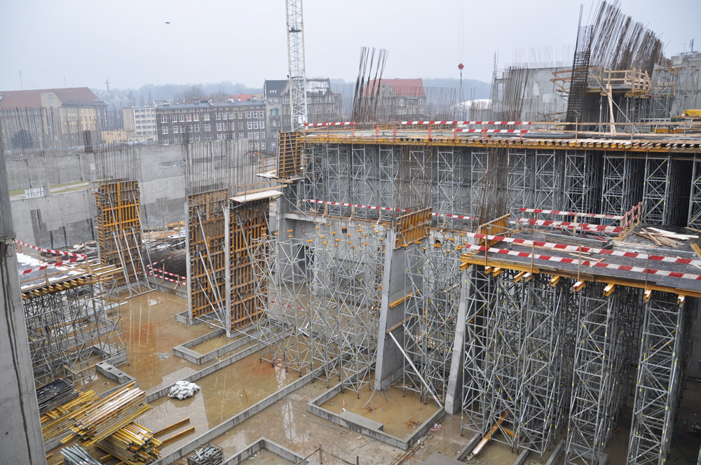Dada à singularidade deste projeto e a alta pressão do betão, a cofragem foi reforçada com Prumos ALUPROP de grande capacidade de carga. Os orifícios laterais dos painéis facilitam o rápido fechamento de cantos, 100% estancados, de acordo com a sua forma original. Este processo permite ajustar tempos, ao mesmo tempo, respeitar os máximos parâmetros de segurança.