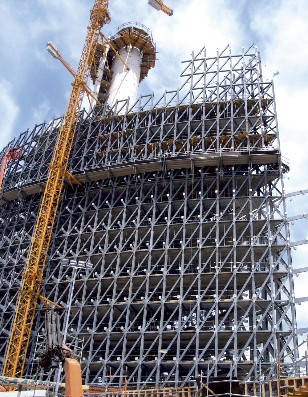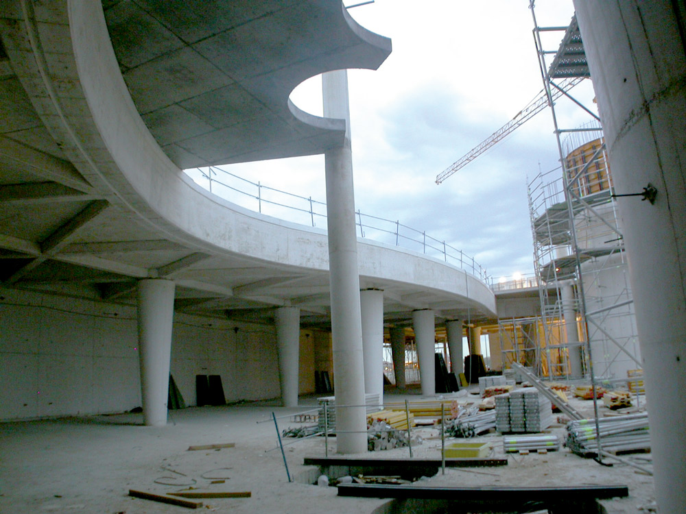 A coluna vertebral do projeto consta de dois núcleos, separados 20 m entre si, que permitem suportar os 8.000 m2 de fachada de vidro. Um edifício tão peculiar, exigiu soluções especiais. Por conseguinte, as complexas formas arredondadas foram conseguidas através da utilização de cofragens realizadas para essa obra. Estes produtos foram utilizados sobre sistemas trepantes, para desta forma, alcançar os 70 m. Para os trabalhos em altura, foram necessárias pequenas plataformas intermediárias, construídas com cimbres e com o Andaime Multidirecional BRIO, além de ser assegurado um nível de segurança extremo mantido durante toda a obra.