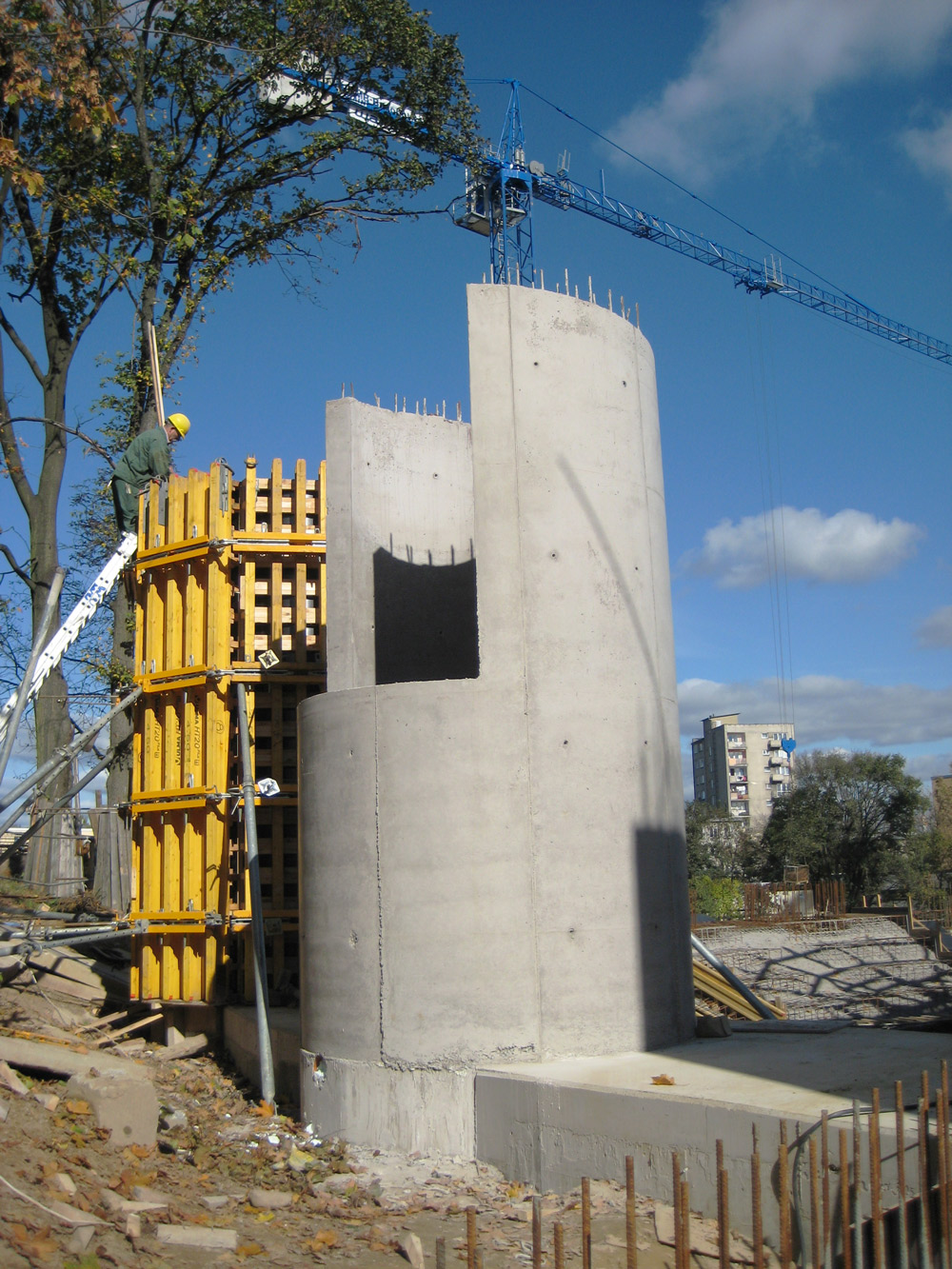 O desafio foi a construção em uma só fase, de muros de 10 m e pilares de 15 m de altura de betão visto, sobre os quais se construíram vigas horizontais de betão. Na construção destas vigas, utilizaram-se torres T-60 de 11 m de altura e cofragens verticais modulares.
