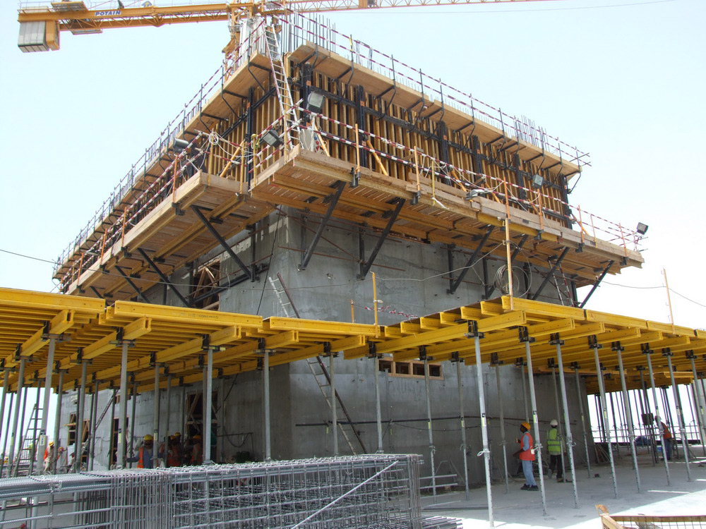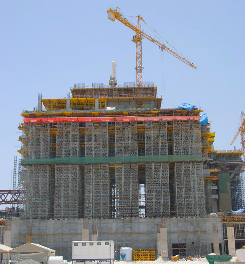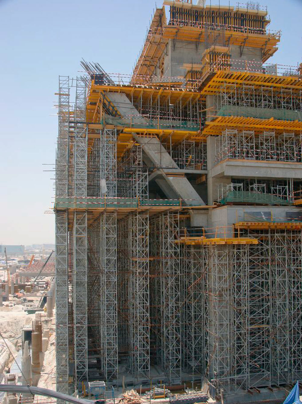 Para as construções em altura, como as estruturas centrais, foram utilizados sistemas convencionais trepantes. As suas plataformas de trabalho disponibilizaram espaço suficiente para realizar todas as tarefas, proporcionando simultaneamente uma grande segurança em todas as fases de execução.