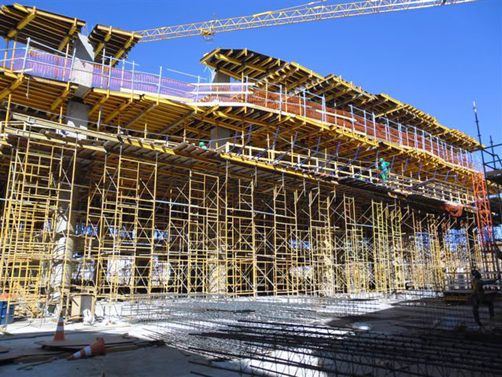 Para obter os melhores resultados, combinaram-se distintos tipos de cofragens: em muros e pilares empregou-se a cofragem modular COMAIN, ainda que o RAPID aplicou-se em lajes maciças e grandes vãos. A Escada BRIO facilitou sempre o acesso aos diferentes níveis.