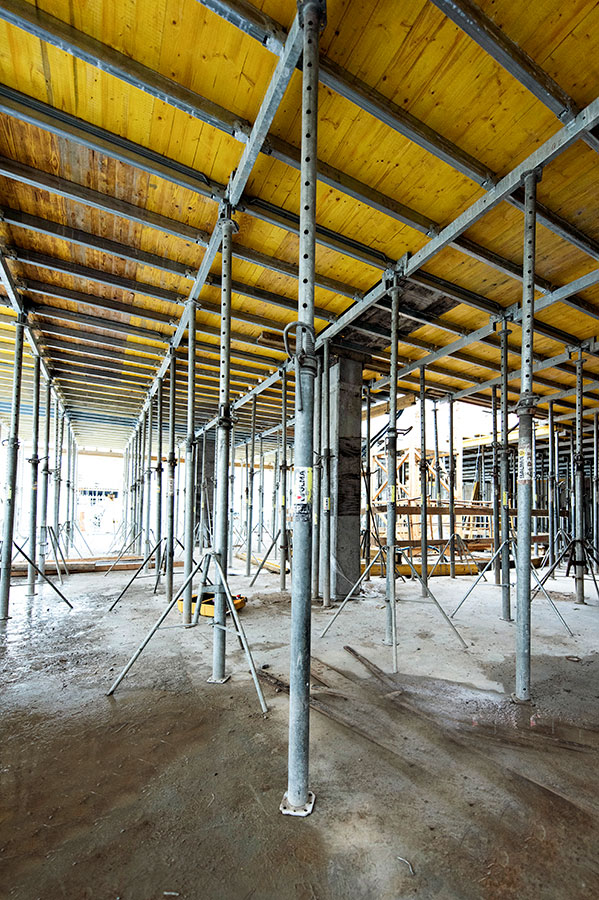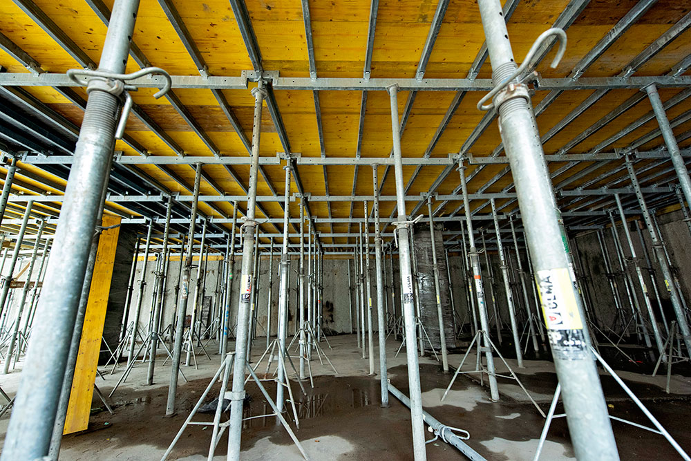 Este projeto de arranha-céus conta com uma variedade de produtos que foram utilizados para a sua construção. Assim, as lajes de betão armado in situ, previstas para os pisos subterrâneos, foram construídas com o sistema de lajes ONADEK. Por sua vez, o sistema de vigas de madeira ENKOFLEX foi utilizado para as lajes pré-fabricadas reforçadas concebidas para os níveis acima do solo. Por razões de segurança e para acelerar o ritmo dos trabalhos, foi utilizado o sistema modular Mesas VR na zona perimetral das lajes. Por fim, o núcleo do edifício foi resolvido com o sistema modular ORMA, apoiado pelas plataformas trepantes para poços KSP.