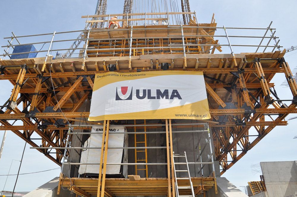 Nos sistema auto-trepante foi utilizado Treliças MK para formar grandes plataformas de trabalho. No sentido inverso, em muros com estruturas de aço salientes, as plataformas foram construídas sobre Treliças MK. Todo o sistema foi apoiado em quatro consoles ATR, que formou uma grande plataforma de trabalho e apoio de cofragem para a execução das muros.