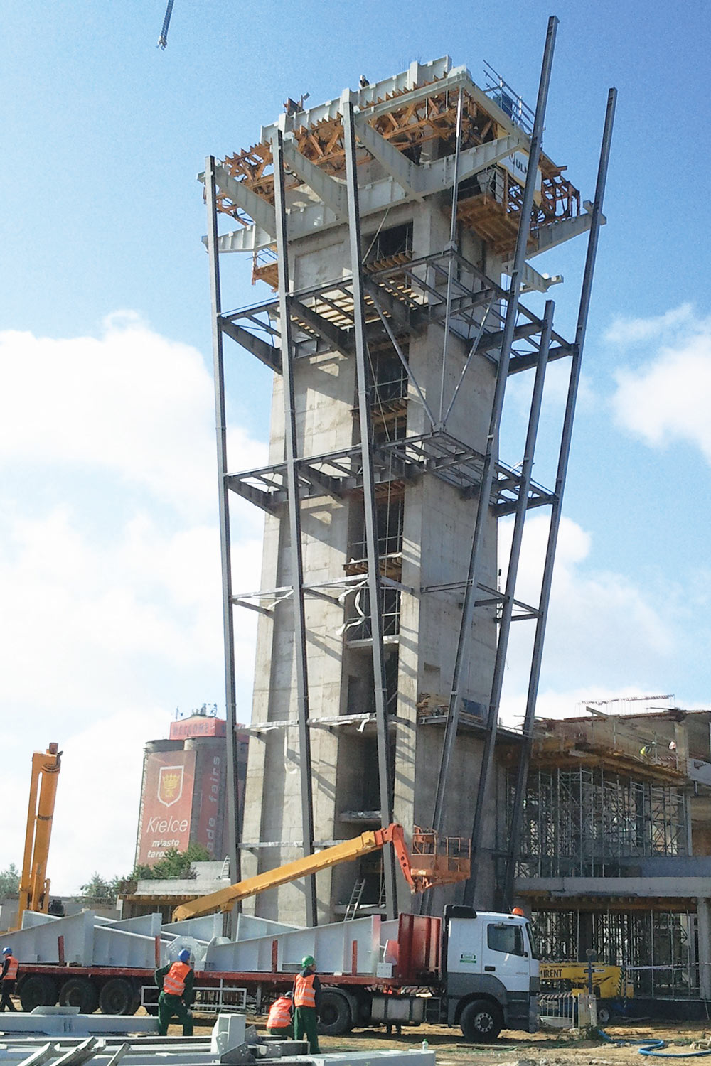 O interior da estrutura foi executado com a plataforma interior KSP, içada por grua e que forma a plataforma de suporte para a cofragem. O Andaime multidirecional BRIO assegurou a passagem vertical entre os diferentes níveis. O Cimbre T-60 e a cofragem de lajes e vigas permitiram a execução das estruturas horizontais.