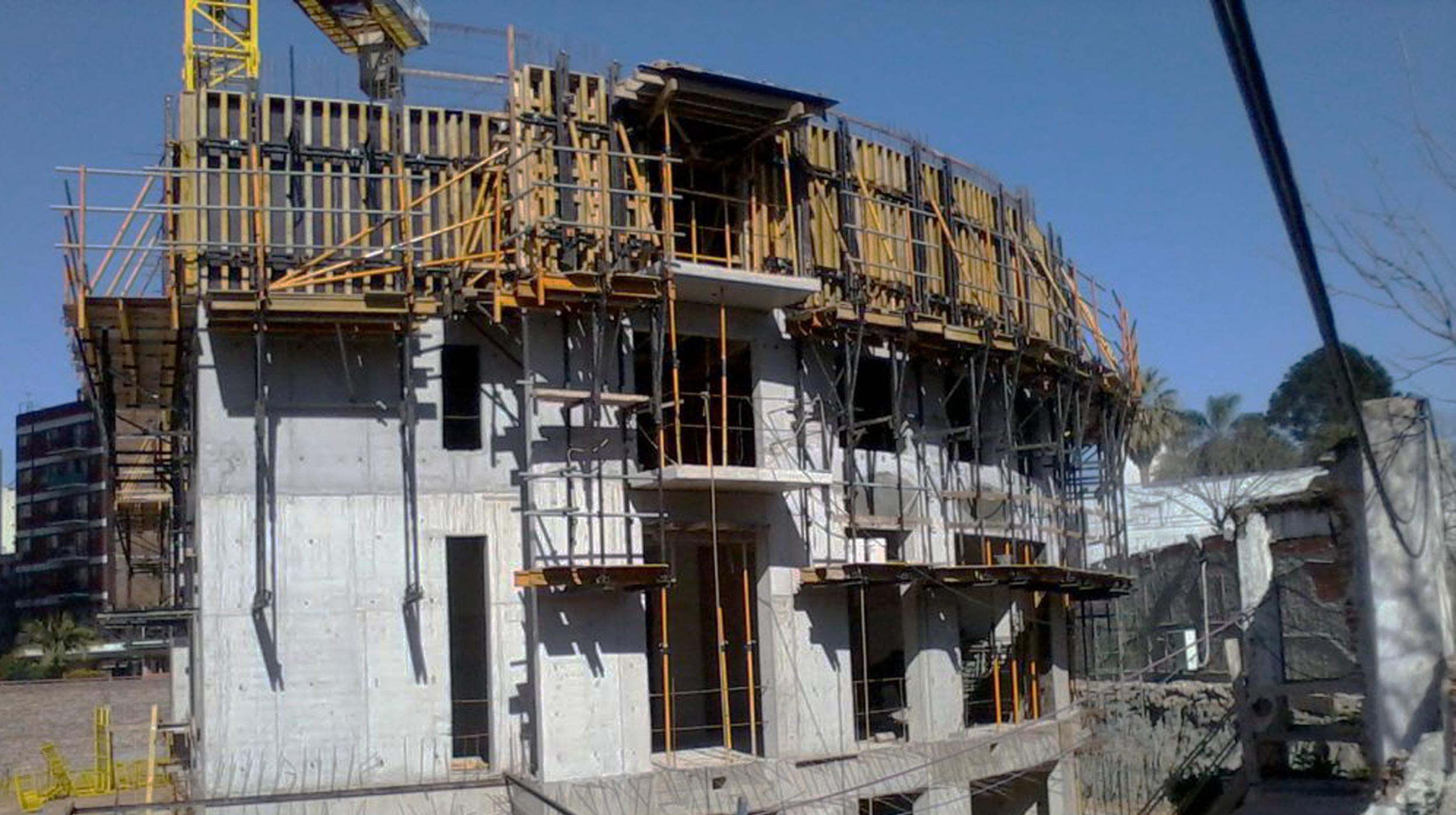 Tudo o que foi fornecido pela ULMA, foi utilizado pelo cliente utilizando técnicas tradicionais de cofragens de madeira.