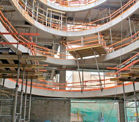 A ULMA também forneceu o Andaime Multidirecional BRIO (no acesso e apoio em grandes alturas), COMAIN (solução de vigas, muros e pilares pequenos) e Estruturas MK com Prumos ALUPROP (vãos horizontais).