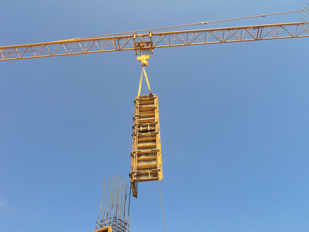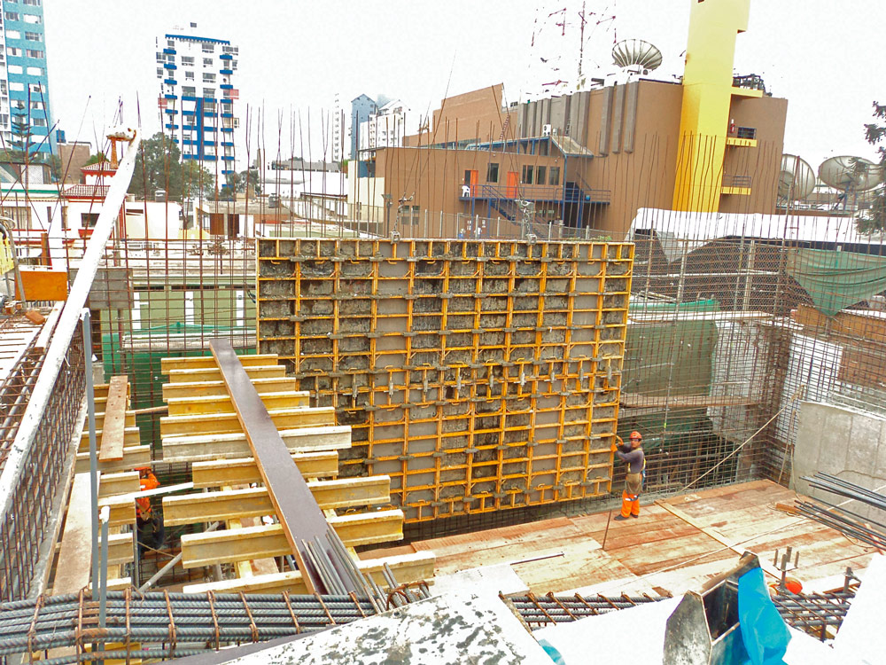 Dadas essas premissas, optou-se pela Cofragem vertical NEVI, fácil de montar e com poucos acessórios. Grandes painéis foram montados 8 x 4 m e facilmente transportados por grua.