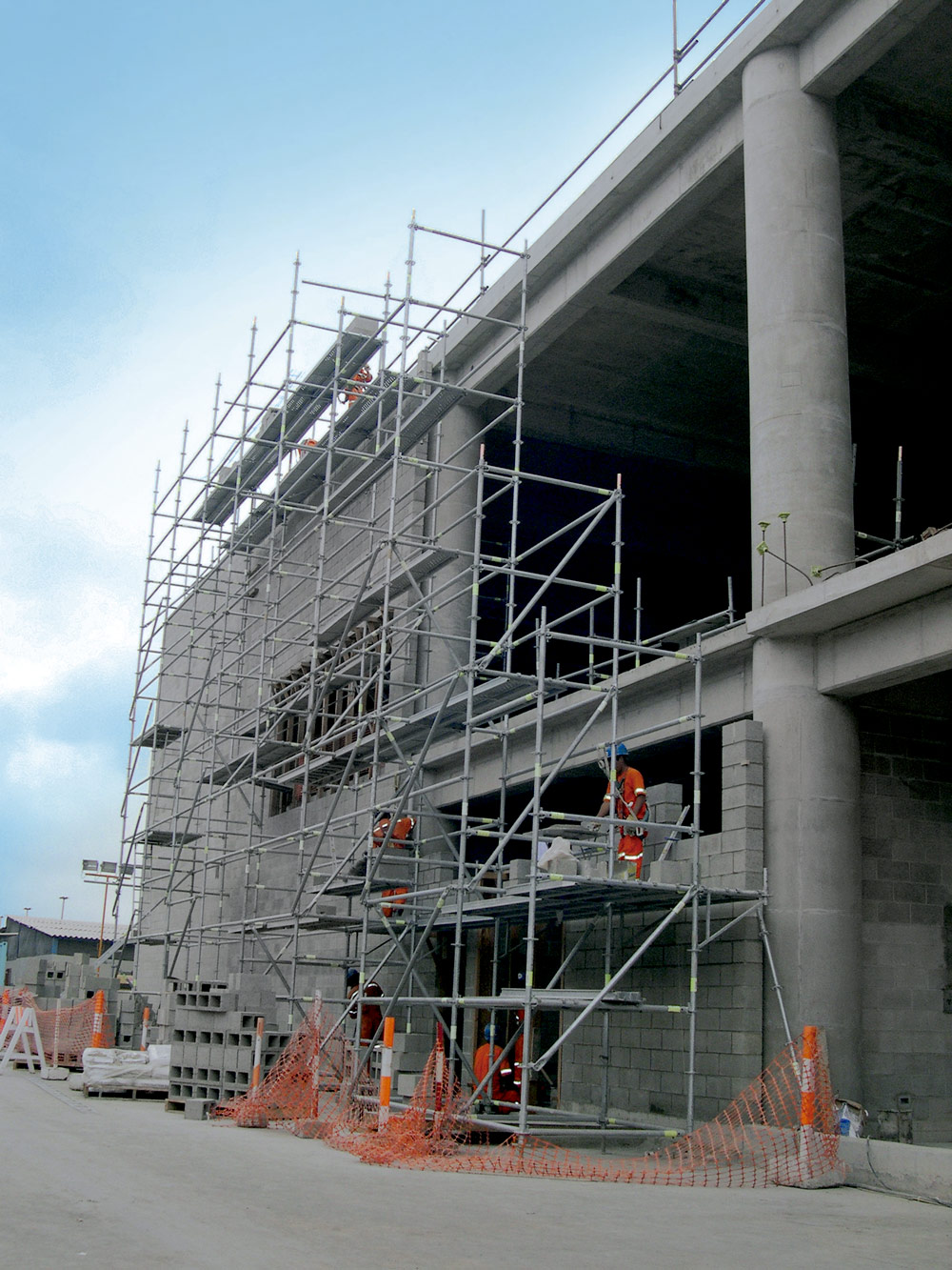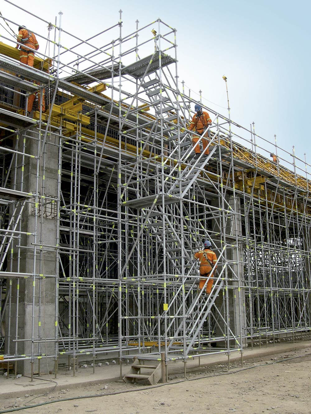 Foram também instaladas com sistema BRIO, plataformas em diferentes níveis, para solucionar o isolamento com blocos de betão. Equipadas com escadas facilitaram o acesso temporário aos pisos das estruturas que iam sendo construídas.