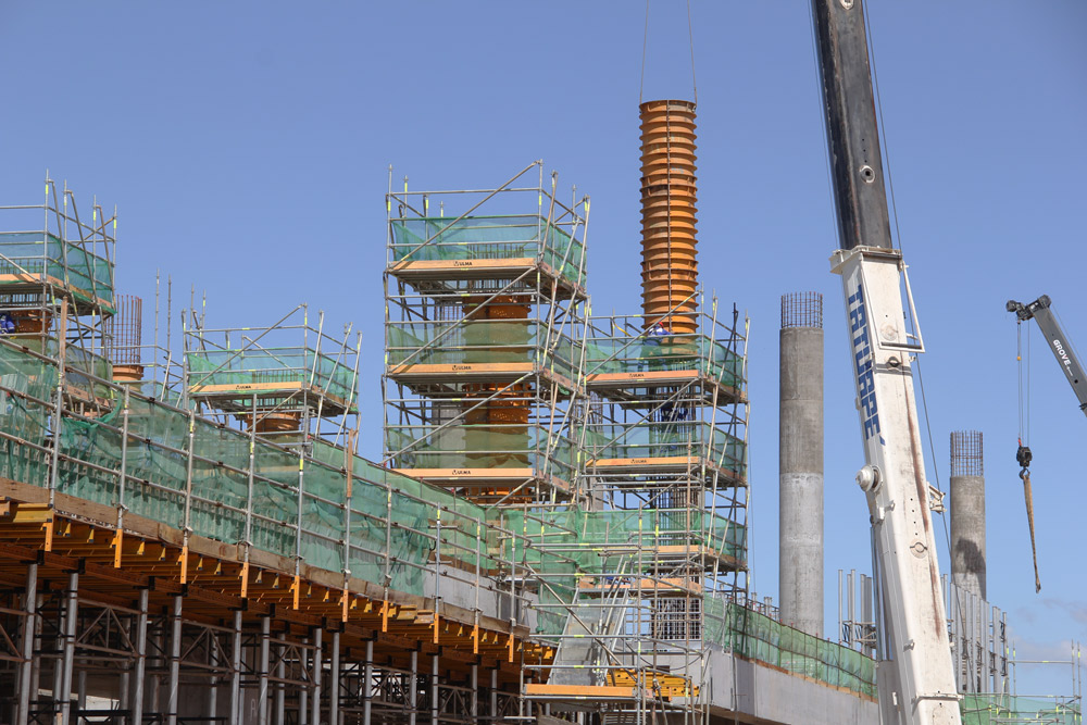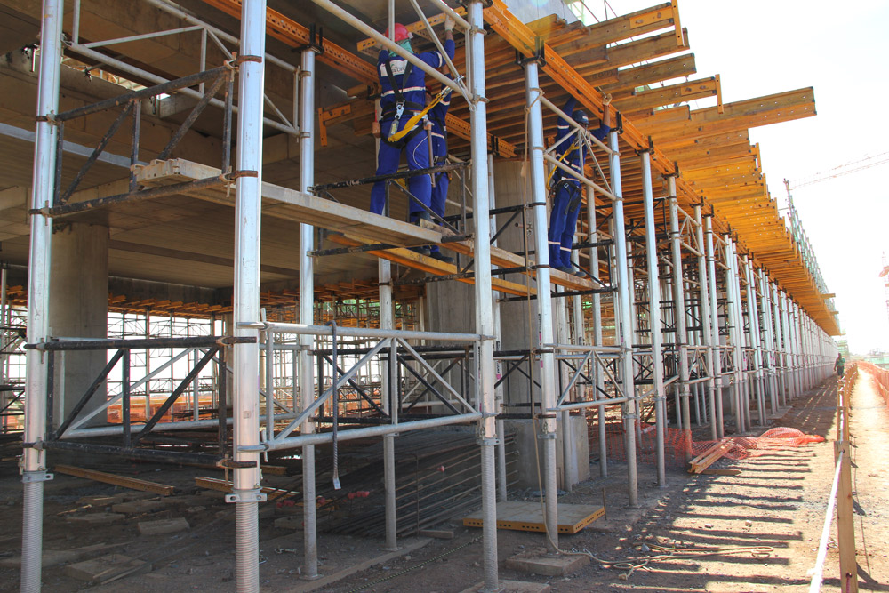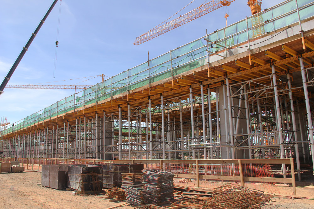 No novo terminal esta sendo feita a construção dos pilares com a cofragem CLR de dois diâmetros (1,20 cm e 1,50 cm) e pilares solteiros de 23 m de altura. O corredor também esta erguendo pilares com o sistema CLR. O Pier B também esta com as mesmas soluções, ou seja, CLR, ALUPROP e BRIO.