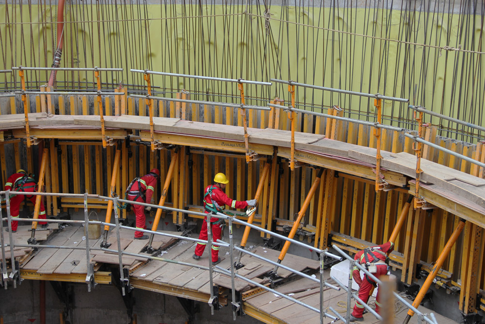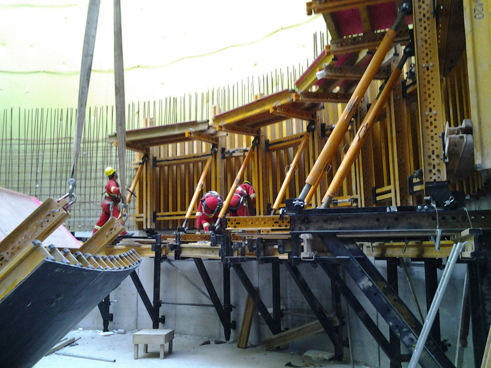 ENKOFORM VMK mostrou sua versatilidade a se adequar aos requisitos do cliente quanto a: alta qualidade de acabamento, geometria singular e curtos prazos. Os mais de 70 pilares da estação, com 8m de altura, foram betonados somente em 2 etapas de 4m.