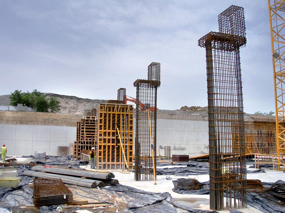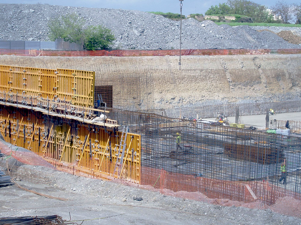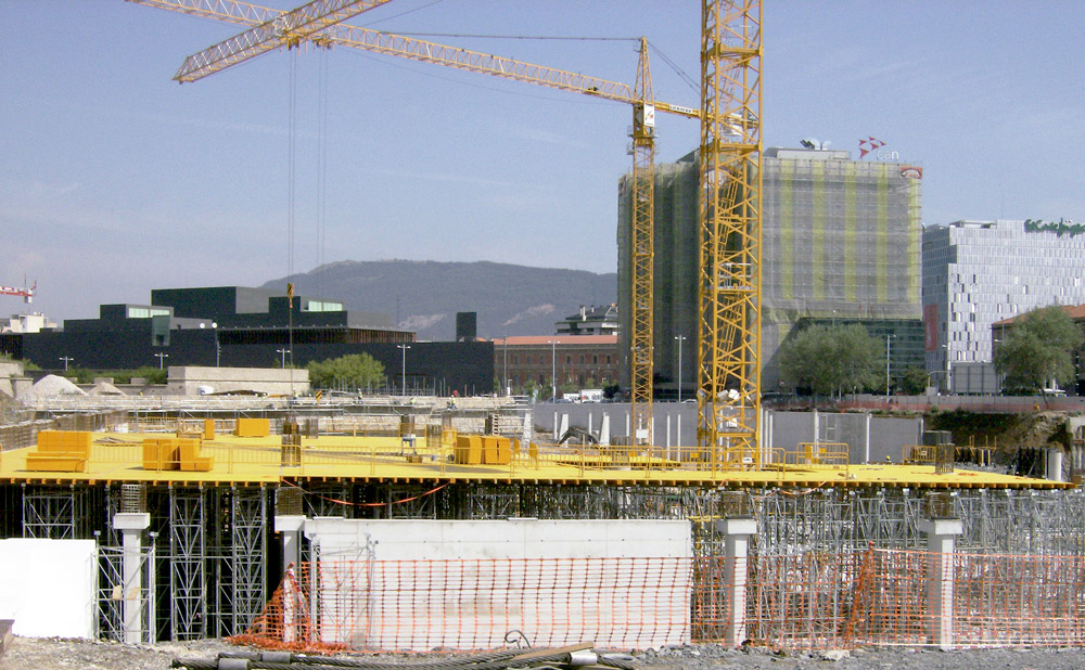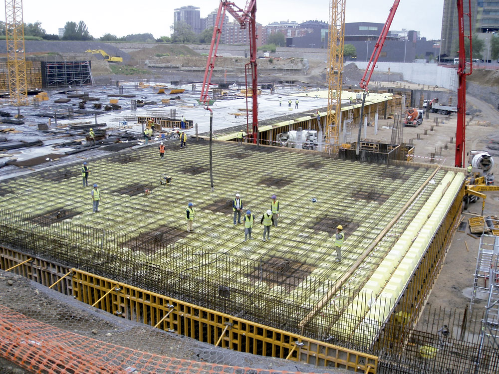 Na execução de muros foi utilizado Cofragem Modular ORMA conseguindo em todos os casos um acabamento de betão à vista perfeito. Quando não foi possível utilizar painéis dupla face, devido às características do espaço, foram utilizados sistemas de cofragem de uma face para resistir à pressão do betão. As múltiplas geometrias dos pilares foram solucionadas com Cofragem Circular CLR, nos cilíndricos, e com ENKOFLEX e ORMA, nos que continham capitéis, etc.