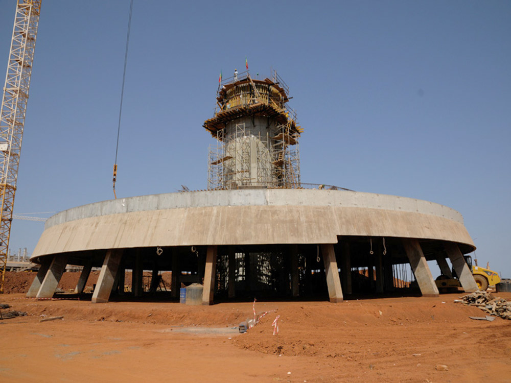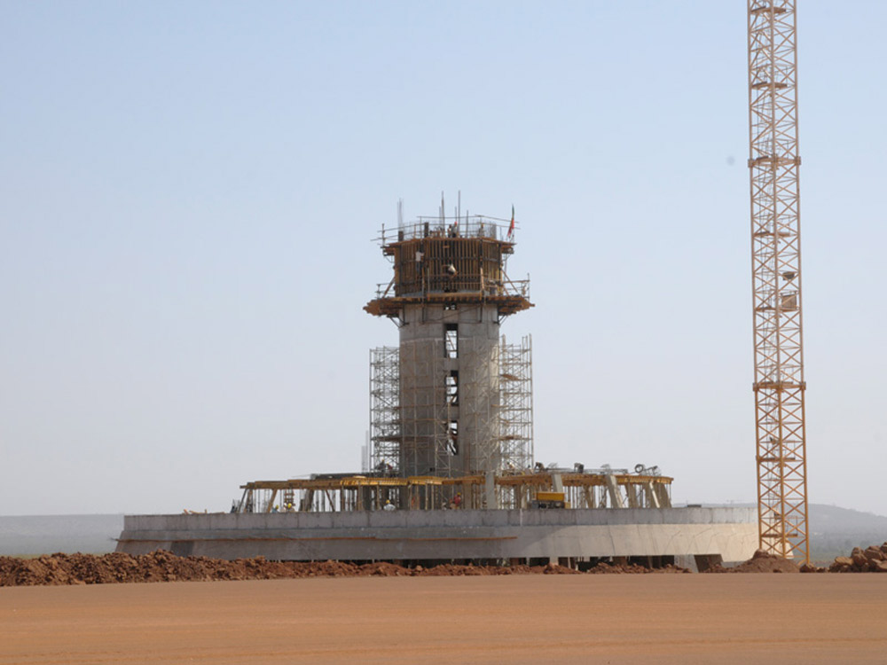 Também presente nesta parte do mundo, a ULMA trabalhou na construção da torre de controle do Aeroporto Internacional de Dakar, de 49,74 m de altura.