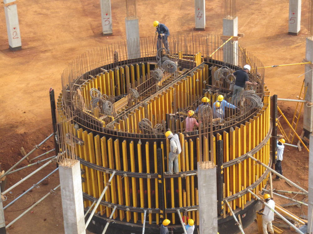 O desenho da cofragem permitiu suportar pressões de betão de até 60 kN/m2. O maior conjunto exterior (cofragem e estrutura de suporte) pesou 5.600 kg, enquanto que o principal conjunto interior chegou a 3.600 kg.