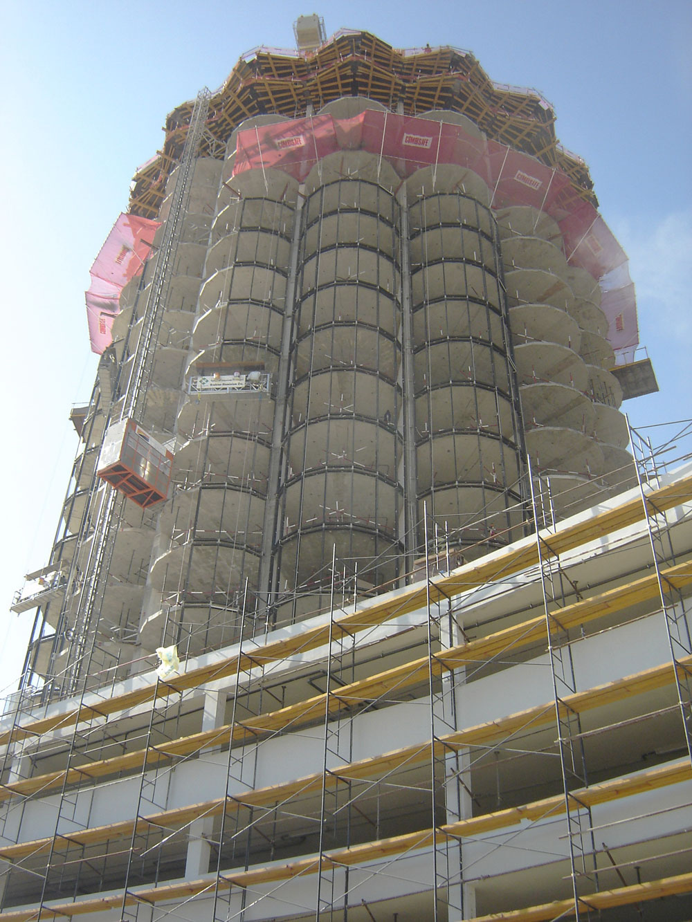 Dada a particular geometria das torres, com saliências curvilíneas, foi utilizado na execução das lajes o sistema ENKOFLEX com Prumo EP. Visto ser formado por vigas independentes, este produto possui grande versatilidade, por isso adaptou-se em perfeição à fachada com cofragens ovaladas.