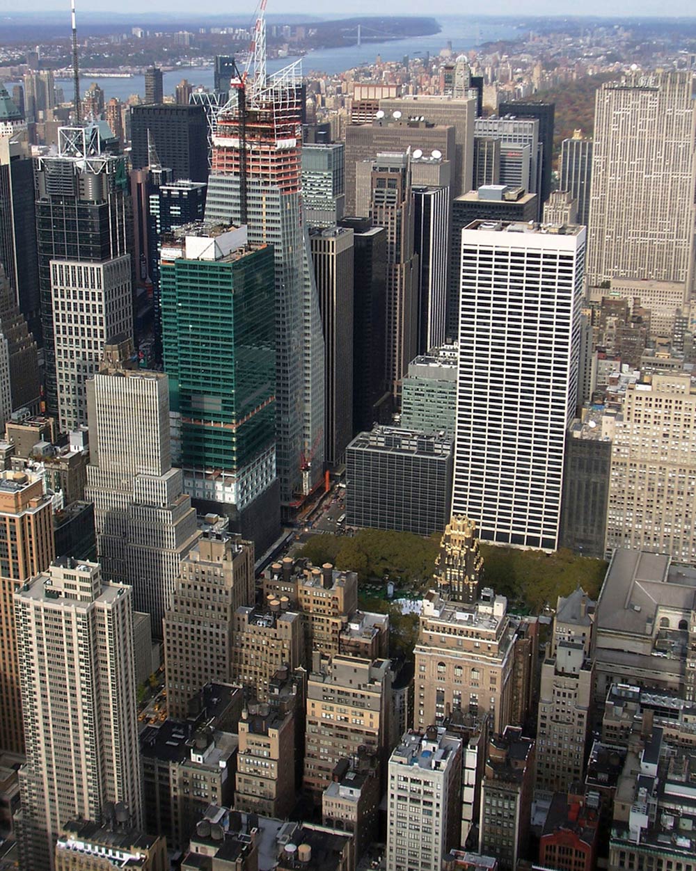 A sua forma está concebida de maneira a proporcionar uma disposição orientada para o sul, realçando a sua relação com Bryant Park e oferecendo vistas dentro e fora da estrutura.