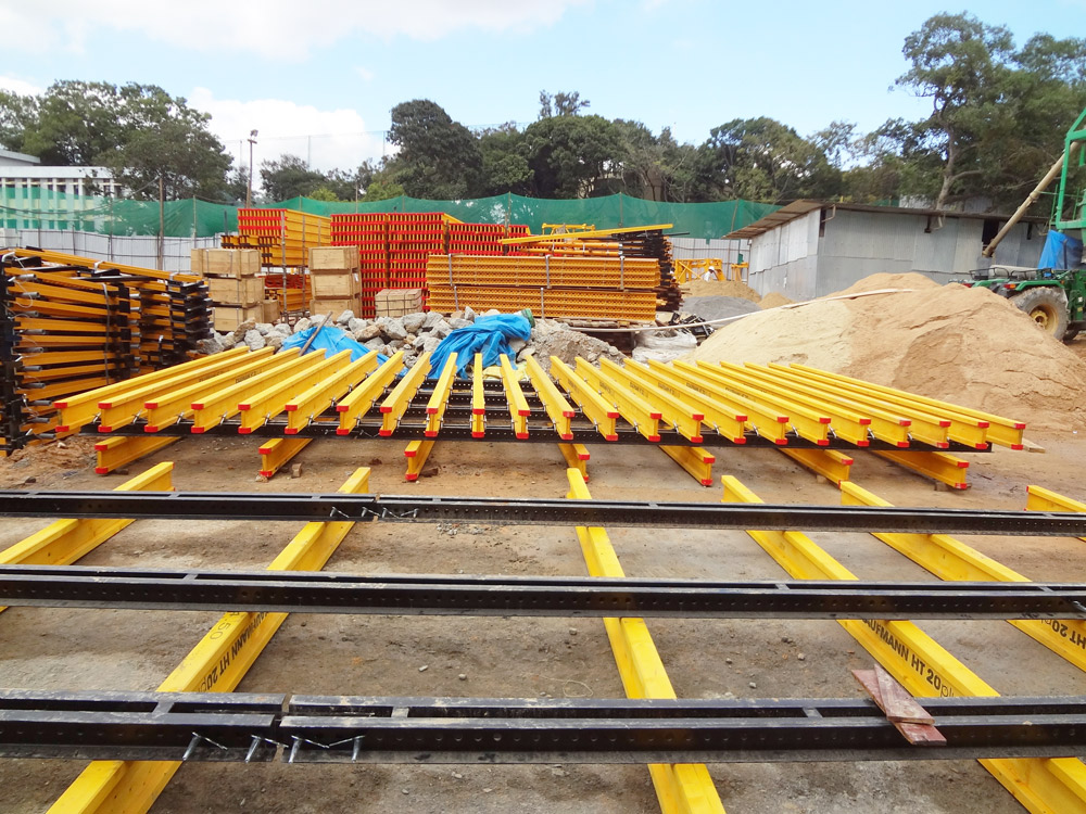 A solução de muros com alturas entre andares de 4,2 e 5,5 m, realizou-se com ENKOFORM V-100.