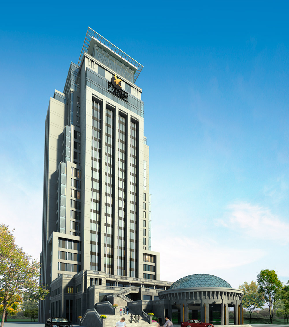 Prestige Trade Tower se projeta com um edifício eficiente e funcional de Arquitetura sóbria e elegante. Por isso, postouse num projeto retangular que concentra em sua área central, tanto serviços como trânsito.