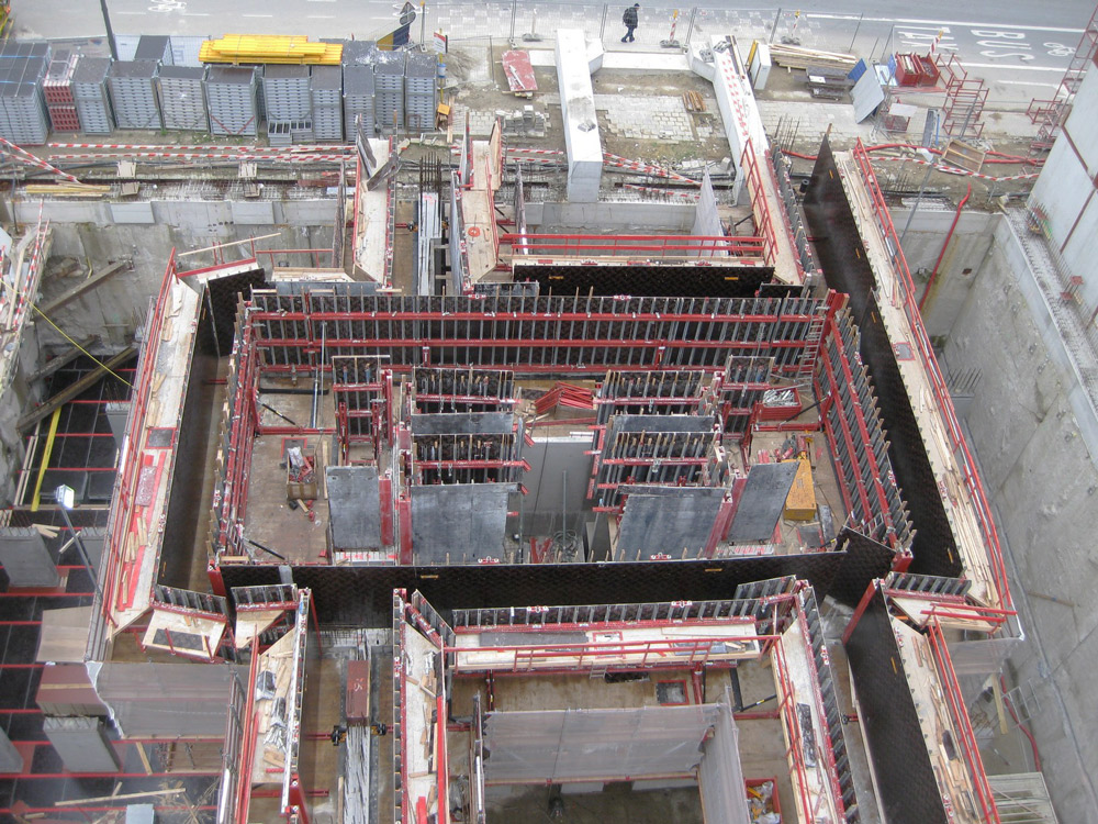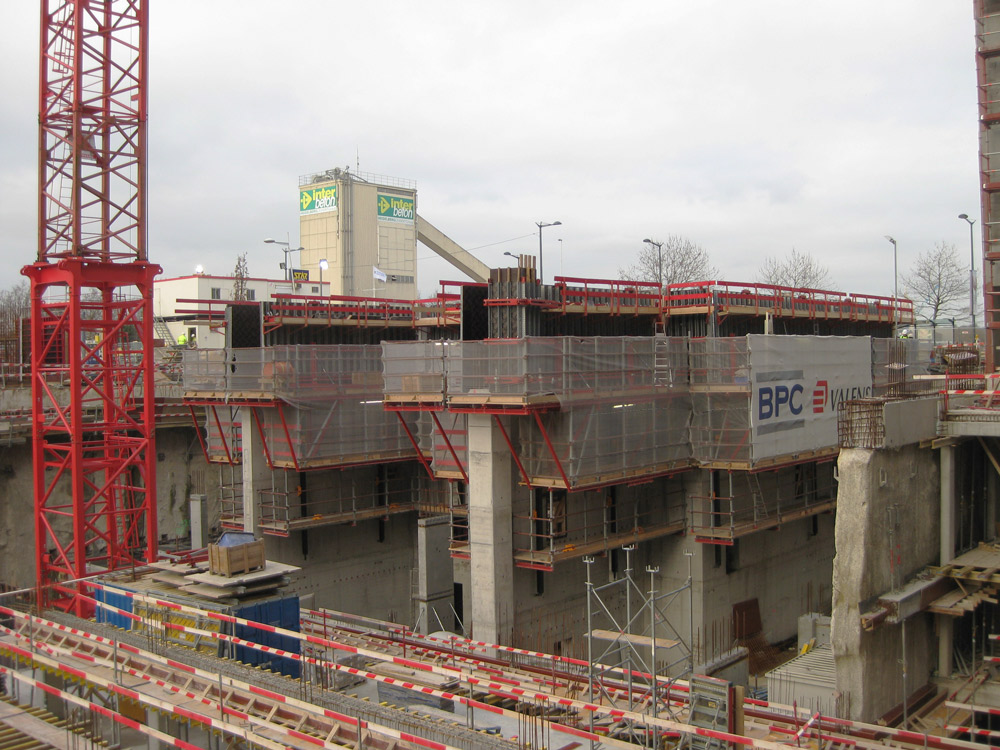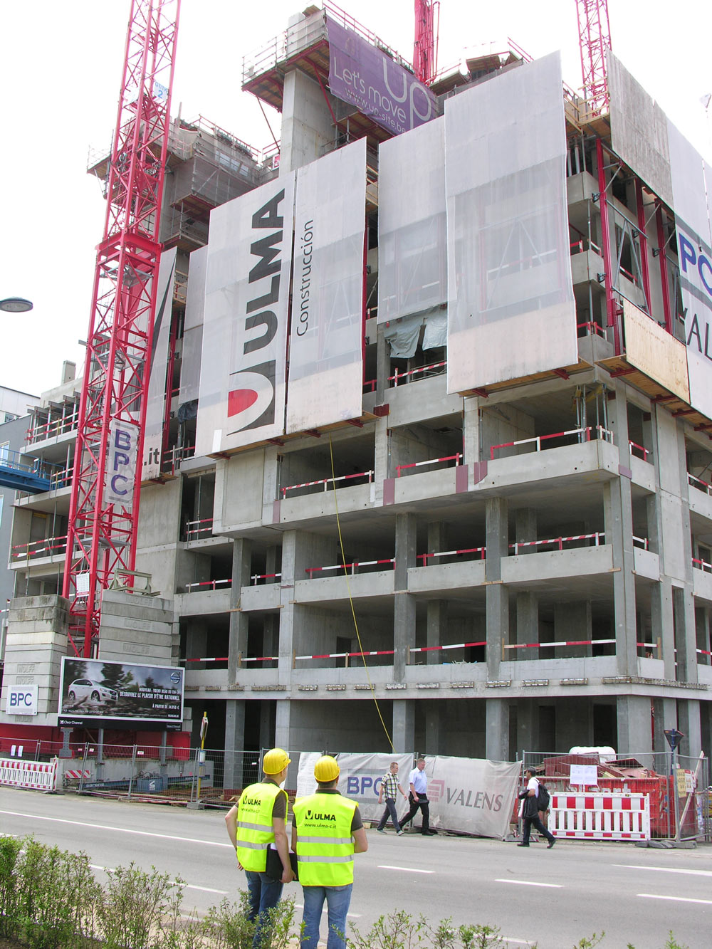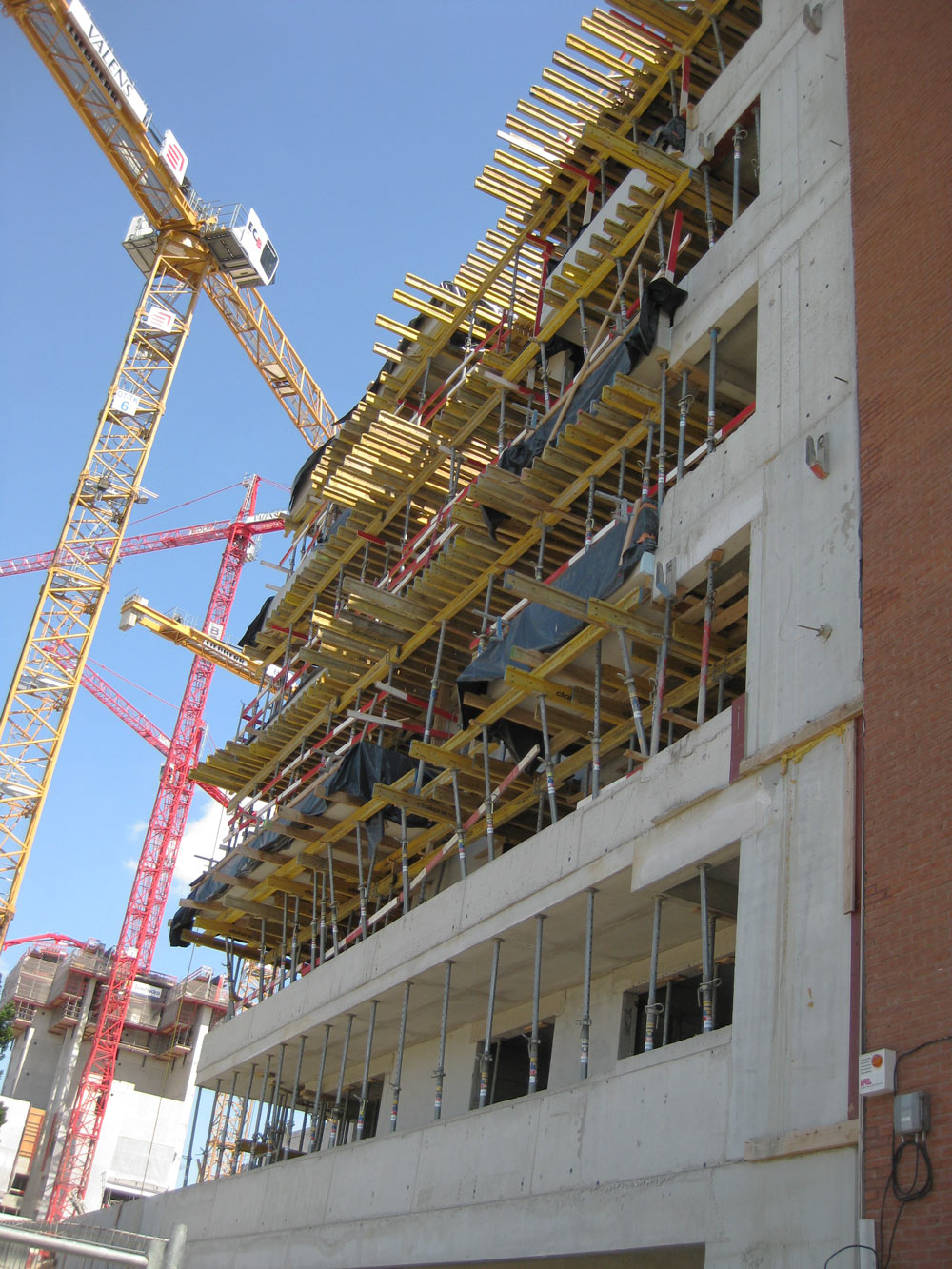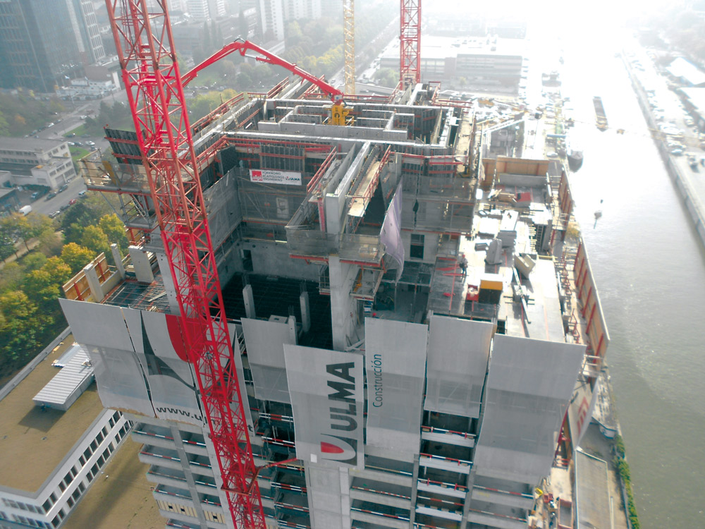 O núcleo do edifício foi construído com o sistema autotrepante ATR e plataformas estreitas para vãos interiores. Dada sua versatilidade, se utilizou sistema de cofragem vertical.