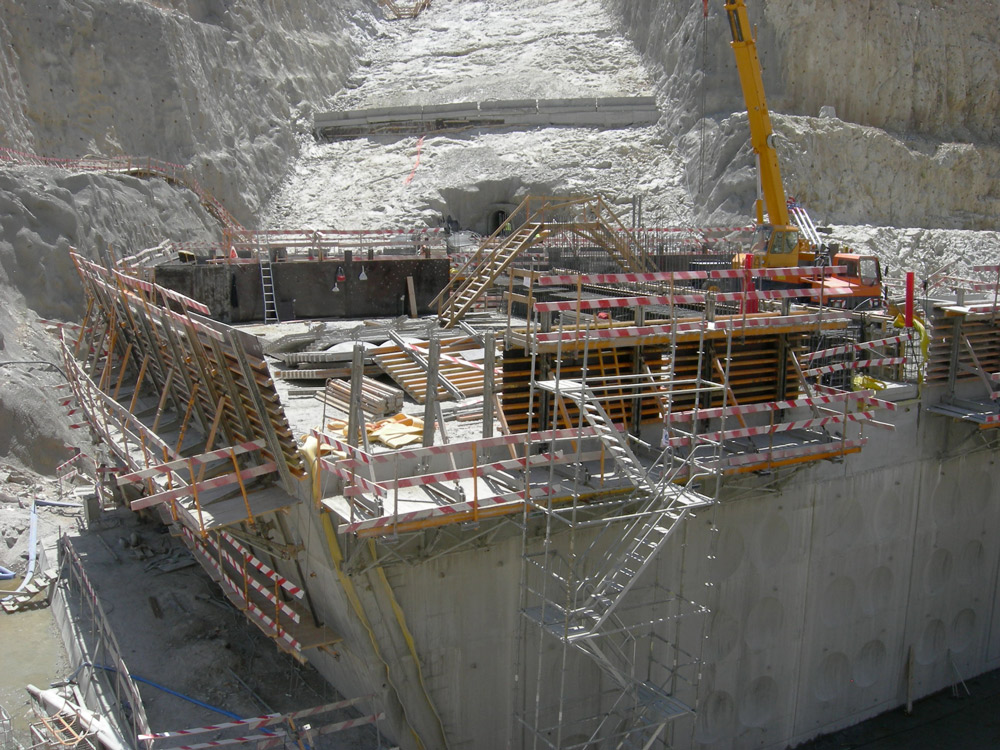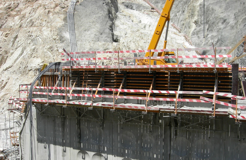 A alta segurança sempre esteve garantida. Graças a Consoles Trepantes 2000 e G, plataformas de trabalho horizontais permitiram trabalhar nas muros da barragem na margem do seu grau de inclinação.