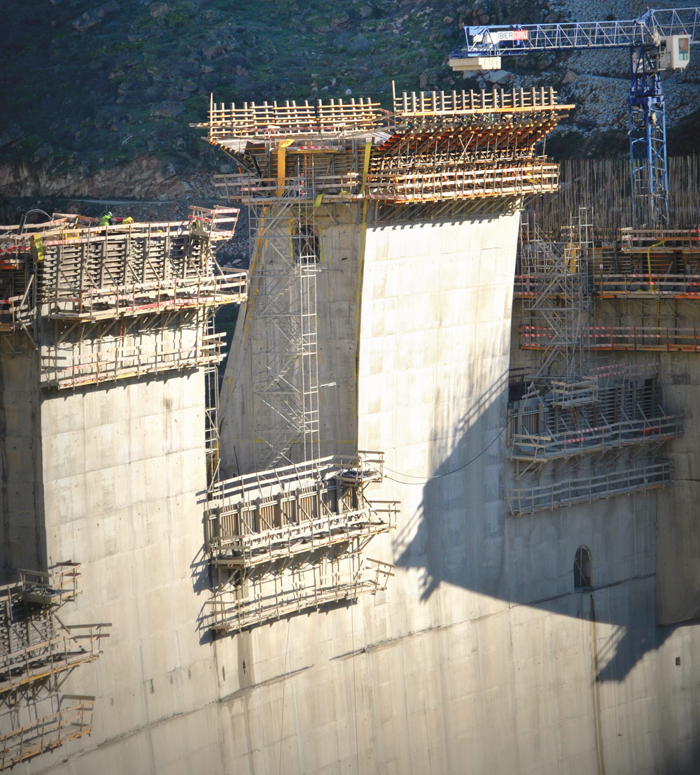Na construção da barragem, 127 m de altura e 505 m de comprimento, foi utilizado a cofragem vertical ORMA, ENKOFORM BIRA e V-100. Também foram utilizados consoles trepantes de uma face, torres de escoramento, andaime multidirecional e ESCADA BRIO. No total foram utilizados 860.300 m³ de betão.
