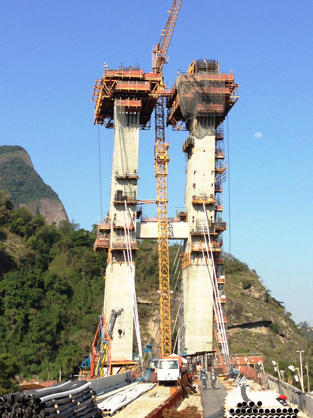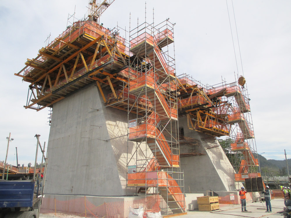 Para a construção desses pilares, foi utilizado o Sistema ATR da ULMA Construction, um cofragem autotrepante para a construção de estruturas verticais que não utiliza grua para sua movimentação. É a primeira vez na América Latina, em que pilares inclinados de uma ponte estaiada são executados desta maneira.