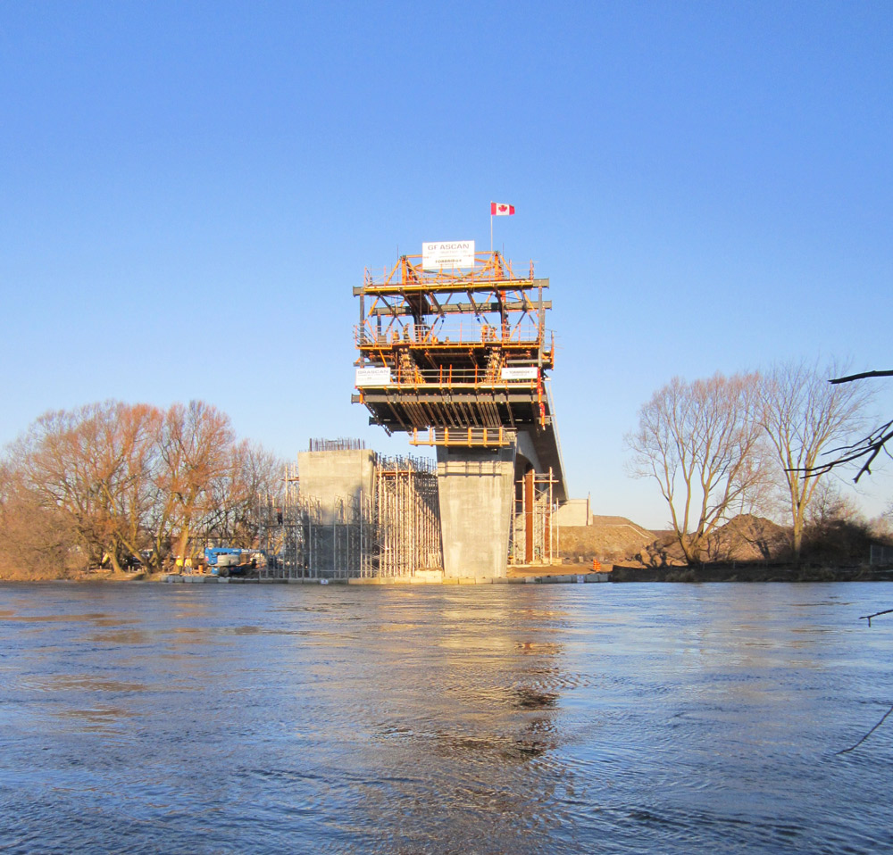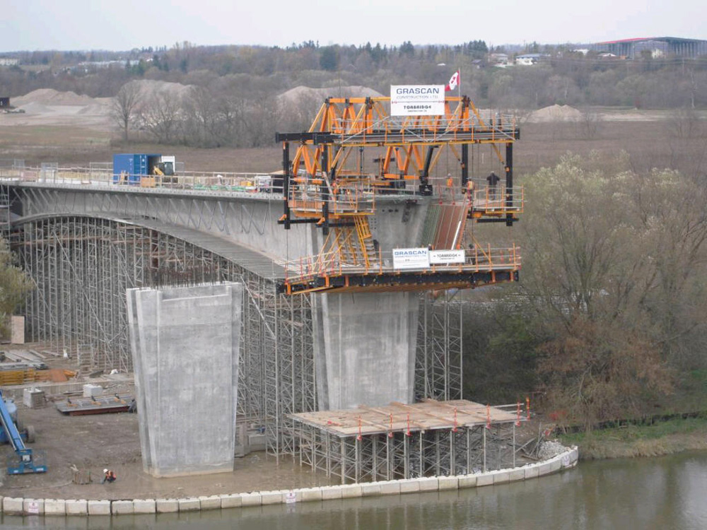 Este vão, levantado balanços sucessivos in loco, tornando essa a primeira ponte construída em Ontário, com essa técnica desde os anos 80. A ULMA colocou a serviço do cliente os mais avançados e qualificados especialistas na aplicação, ideal para orografia complicada, mais comum na Europa.