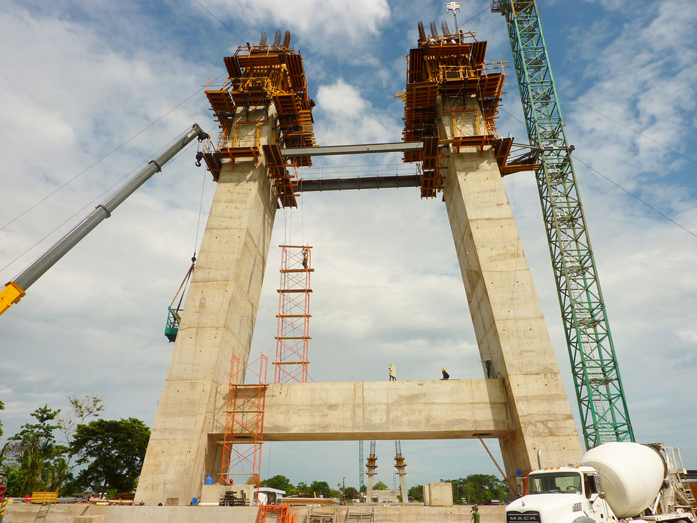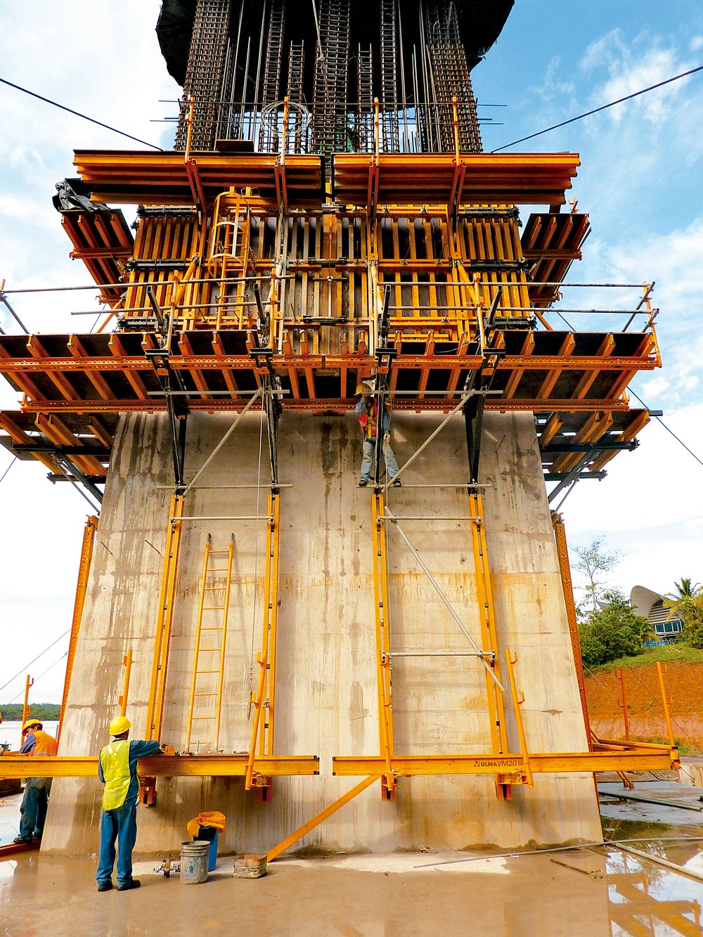 Para a construção das duas torres, vigas, pilares e encontros a ULMA incorporou o sistema de cofragem horizontal ENKOFORM HMK, vertical ENKOFORM VMK, tensores e consoles trepantes.