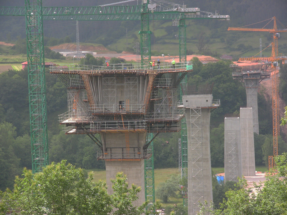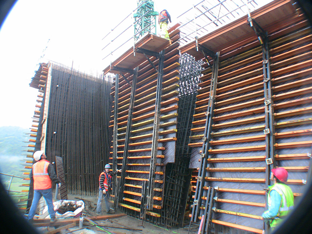 Para os pilares de 70 m de altura se realizaram diferentes concretagens com o Console Trepante CR-250 e a cofragem vertical ENKOFORM V-100.