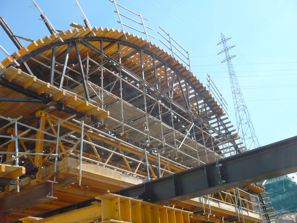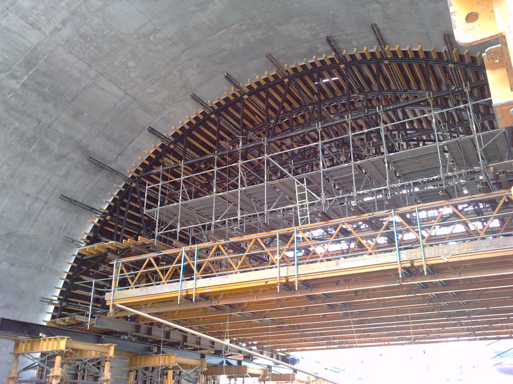 Os trabalhos foram realizados a 17 metros de altura, já que abaixo do piso funciona o metrô e as lajes intermediárias tem uma espessura reduzida. Não sendo possível usar o sistema de torres conjugadas, foi proposta uma complexa solução técnica: um carro porta cofragem elevado, escorado com Cimbre T-500, Estruturas H-33, BRIO e Riostras curvas, assim foram vencidos os reforços transversais de betão a cada 5,2 m.