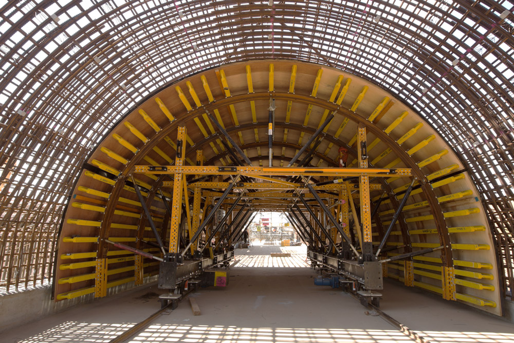 Para satisfazer estas necessidades se utilizaram Carros para Túnel MK. As conexões entre riostras do Sistema MK proporcionam grande rigidez e exigem menos materiais. Além disso, facilitam a colocação de maiores plataforma de concretagens maiores que as usuais.
