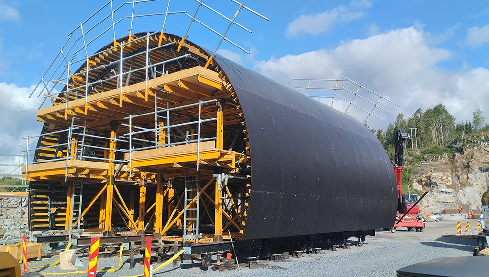 Os túneis de corte e cobertura têm de 80 a 90 metros de comprimento e a colocação do betão foi realizada em secções de 11 metros de comprimento, sendo que algumas secções têm corte transversal variável. A equipa de engenharia da ULMA projetou um carro MK com 10 m de largura e 12 m de comprimento. Para isso, o cliente necessitava de um sistema flexível, económico e modular que permitisse ajustes conforme necessário e que fosse facilmente transferido para a fase seguinte. De facto, a presença de carris simplificou o processo de cofragem e descofragem e a elevação e descida dos segmentos, bem como o deslocamento longitudinal do carro, que foi realizado em 7 dias.