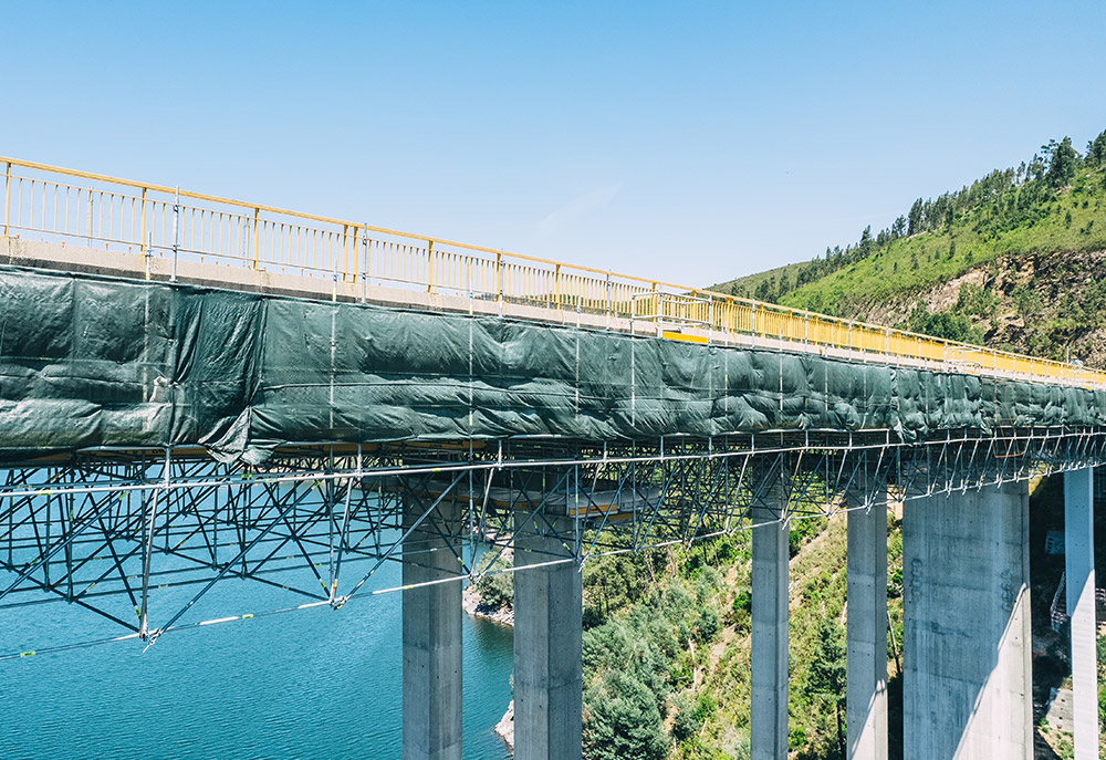 Desde as primeiras fases do projeto, a ULMA colaborou com a VSL para estudar a viabilidade de uma solução que garantisse o acesso total à parte inferior do tabuleiro, requisito indispensável para a correta execução dos trabalhos de reforço e reparação. O planeamento antecipado permitiu desenvolver uma proposta técnica adaptada às características geométricas da ponte e às exigentes condições do local, sem afetar o tráfego.