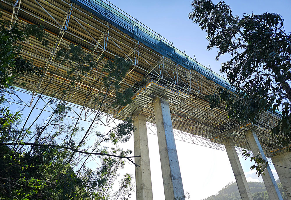 O ambiente da obra, com espaço limitado para armazenamento, exigiu um planeamento logístico preciso. A ULMA organizou o envio fracionado do material e garantiu um ritmo de montagem sustentado de um vão por semana. No total, foram instaladas 280 toneladas de andaimes multidirecionais BRIO, cumprindo os prazos estabelecidos e garantindo altos padrões de segurança em cada fase.